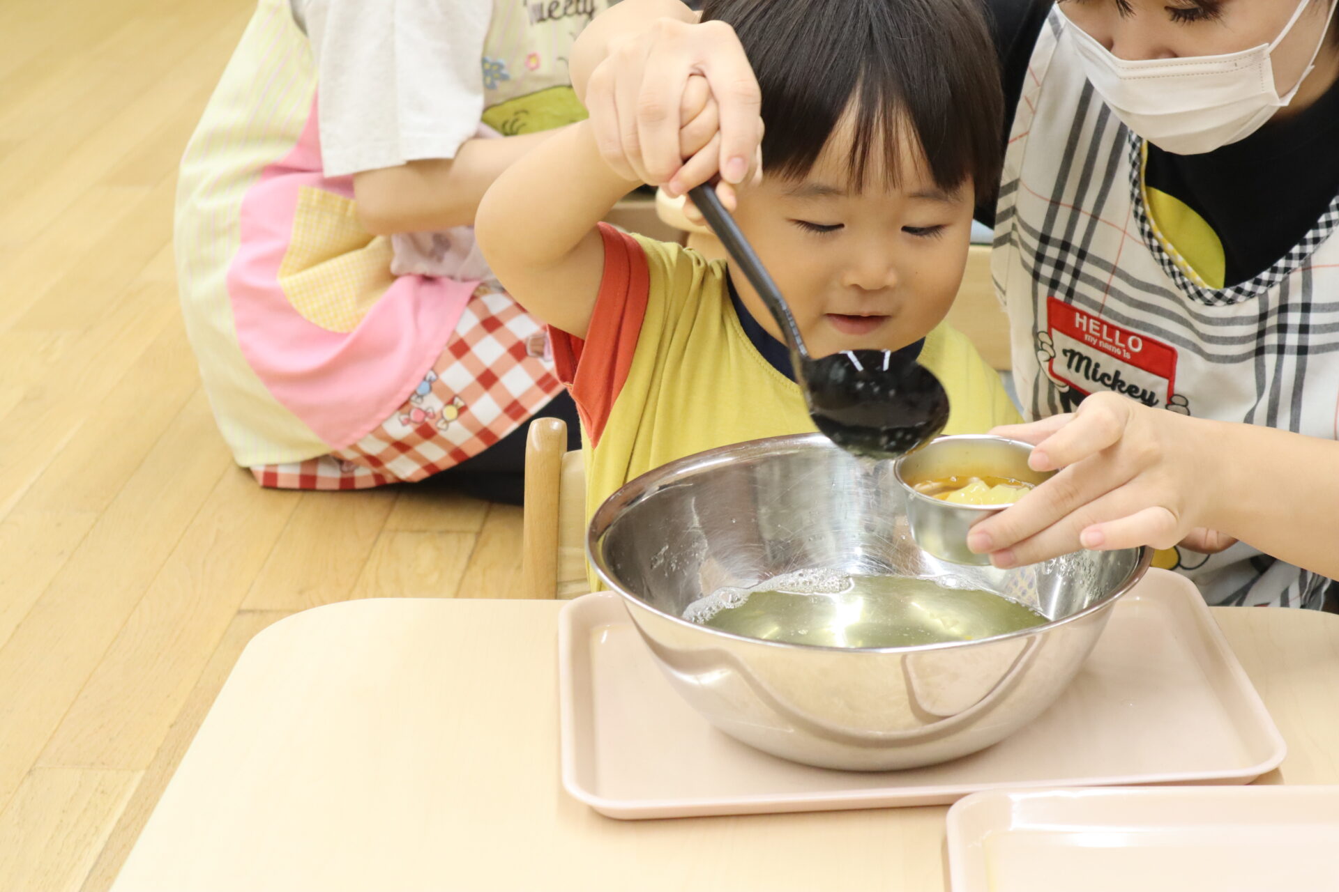 今日はだいち組で初めてのクッキングで、ゼリーを作りました。