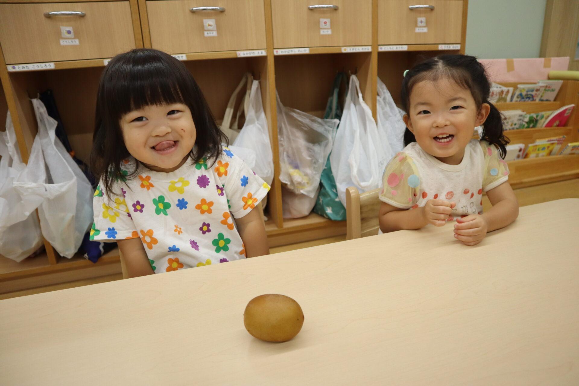 「ハートにする!」「キラキラ星がいい!」とかわいい形になったキウイを見てニコニコ笑顔な子ども達でした!
