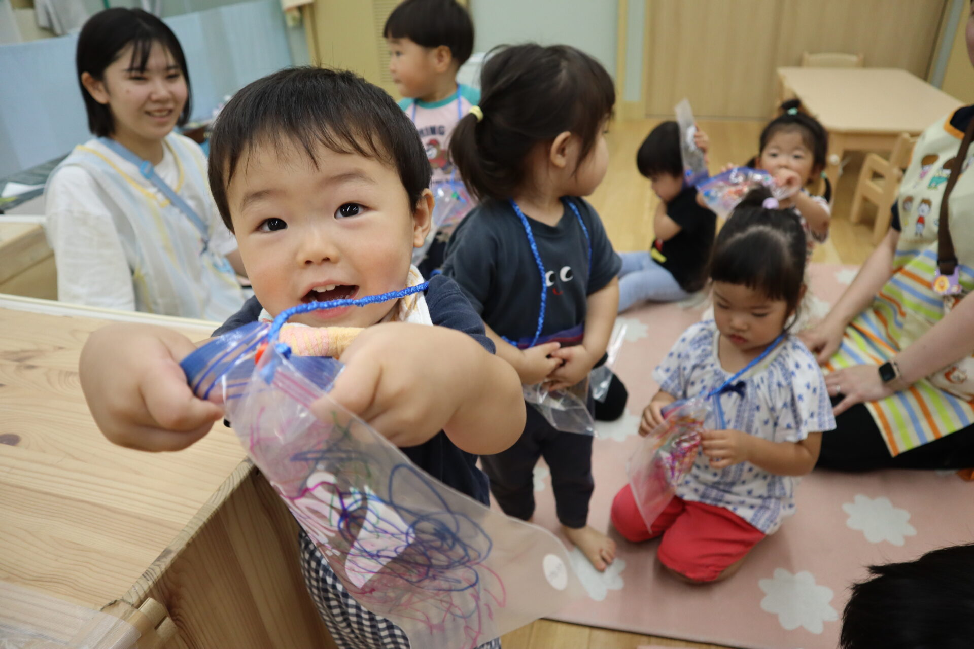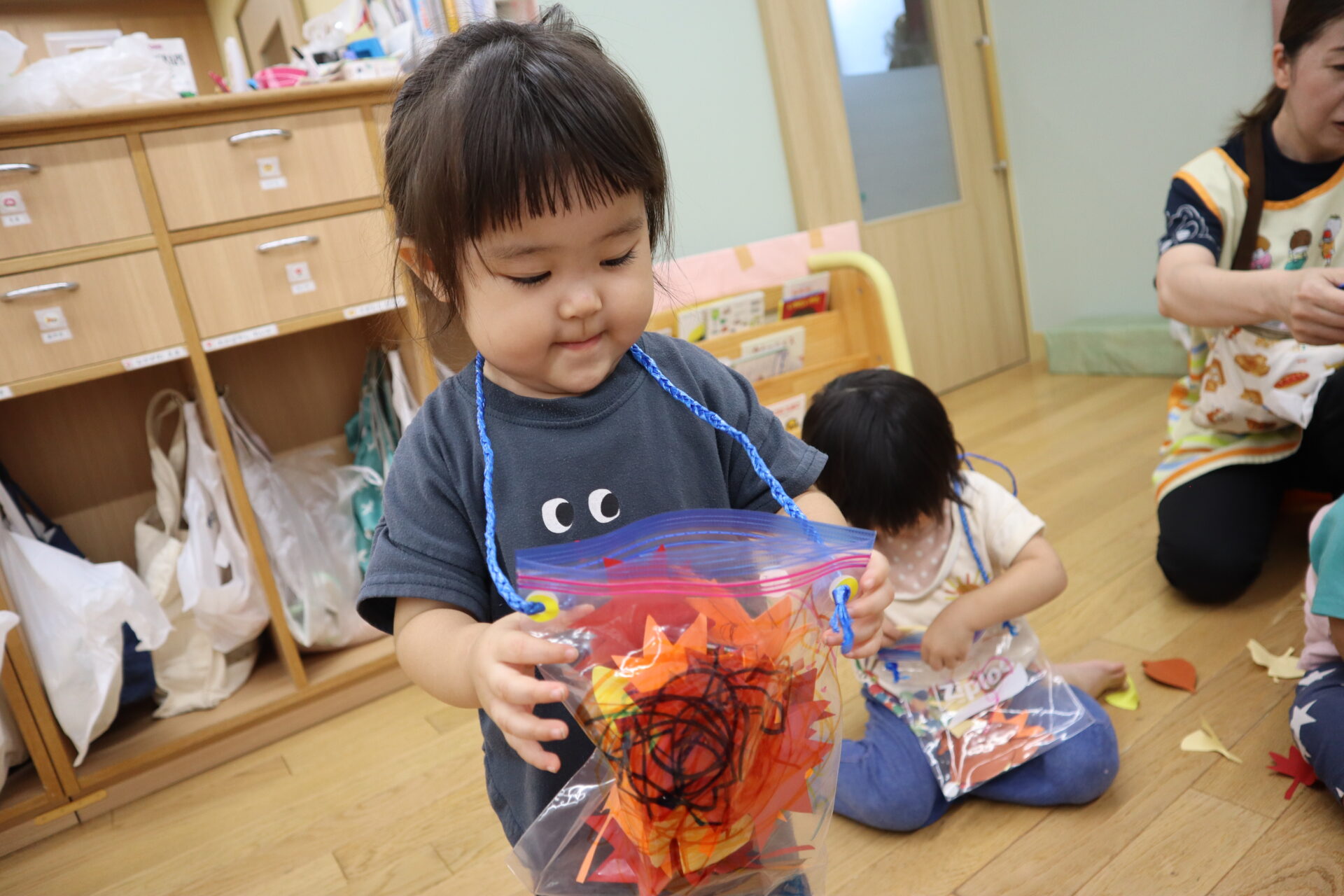 鞄の中がいっぱいになると保育者に「見て見て!」「いっぱい!」と見せに来てくれました!