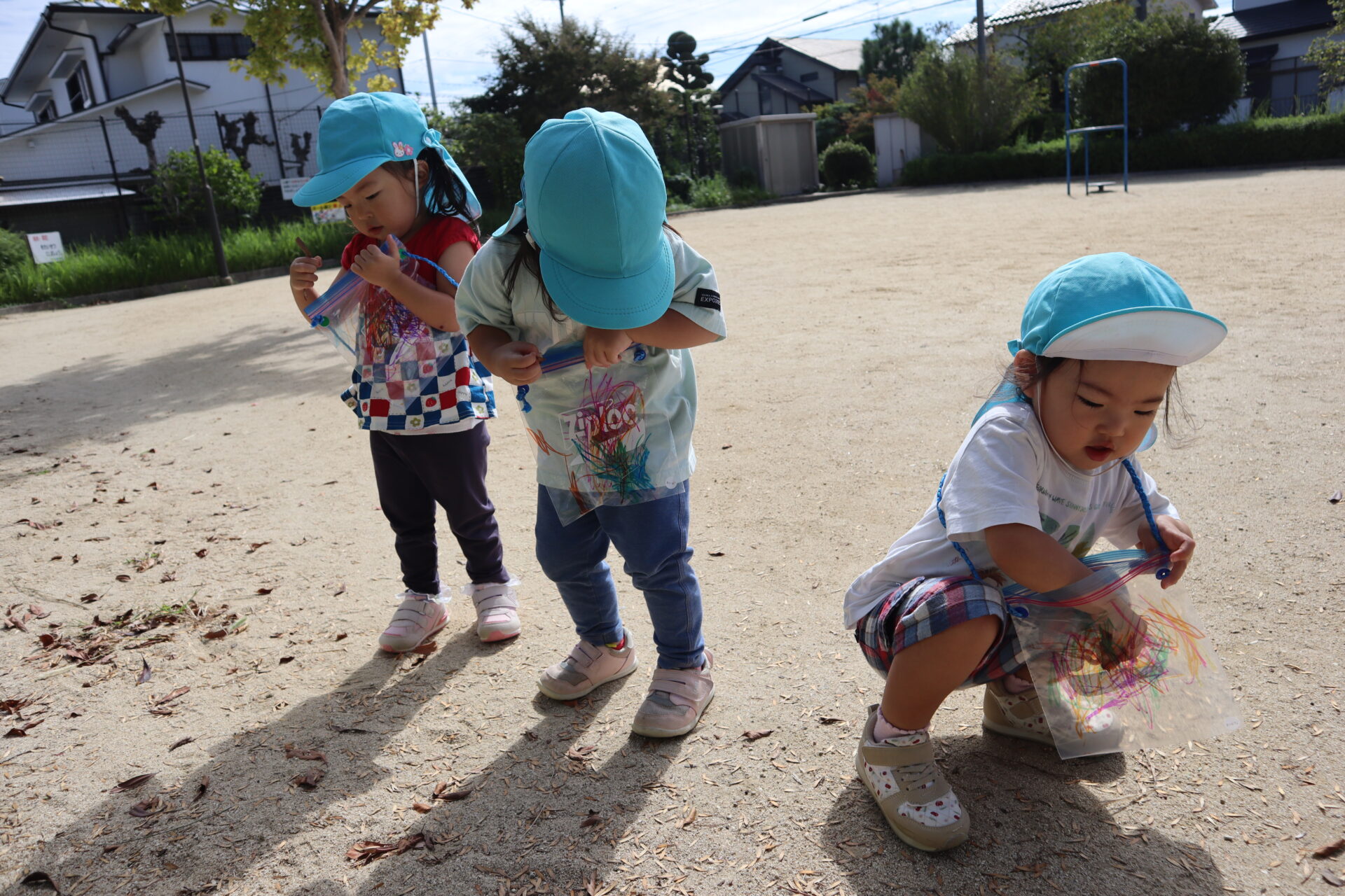 小さい落ち葉が沢山落ちており、拾うことに夢中な子ども達です!