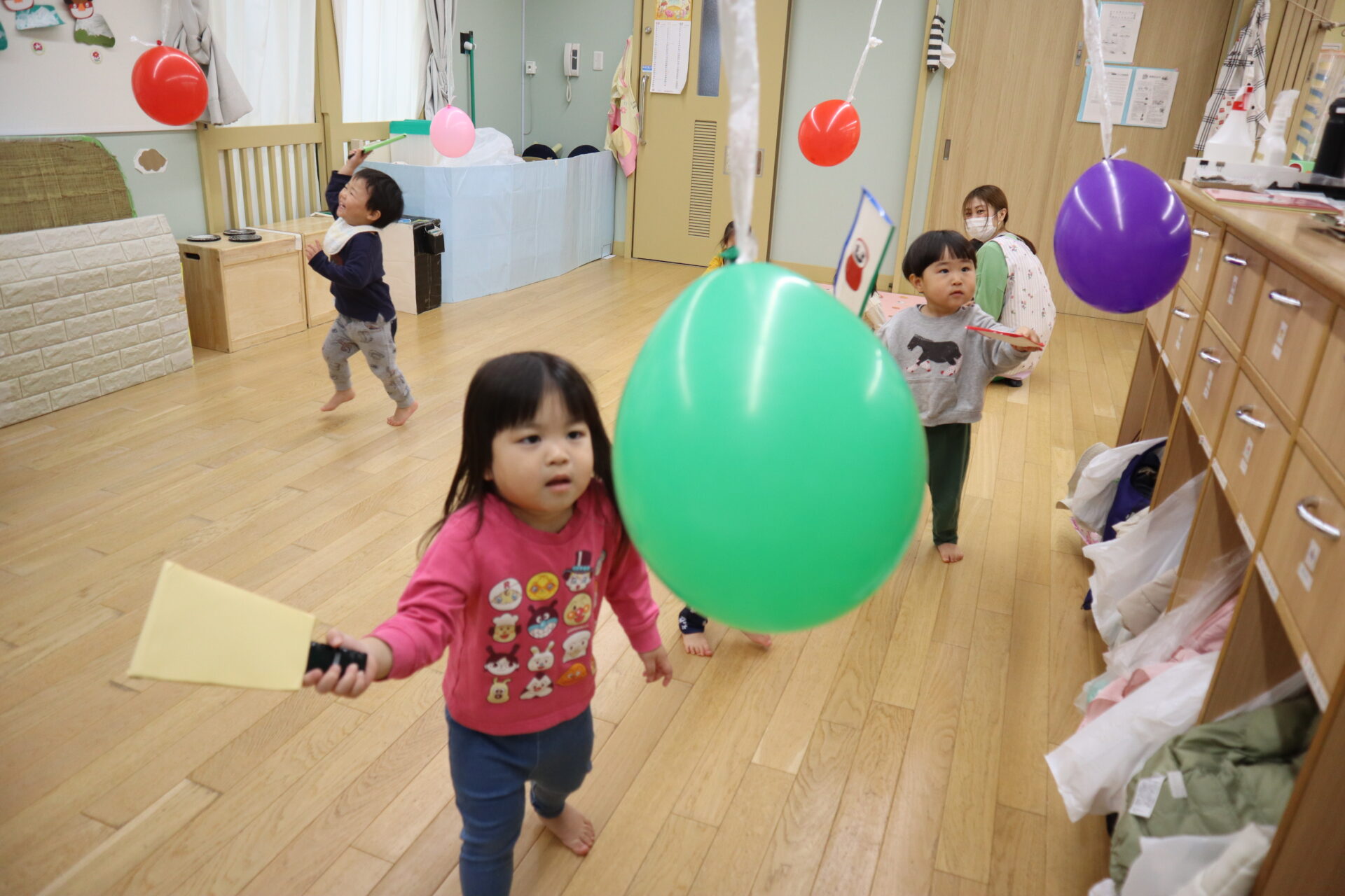 風船の色を見ながら「緑にする!」「次は紫!」と決めたりする子もいました。