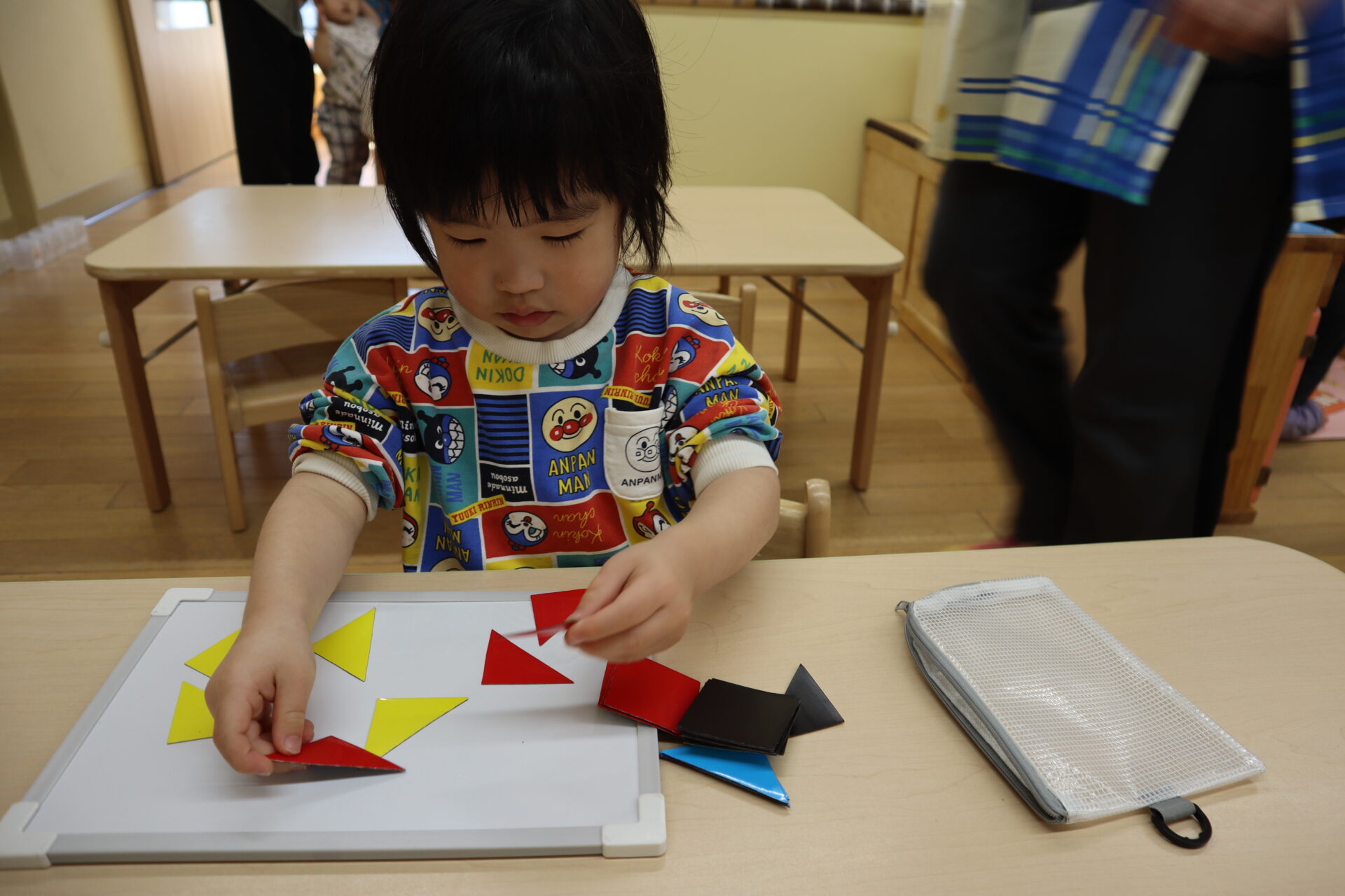 また色んな形がある為、「三角!」「まる!』と良いながら楽しむ場面もありました。