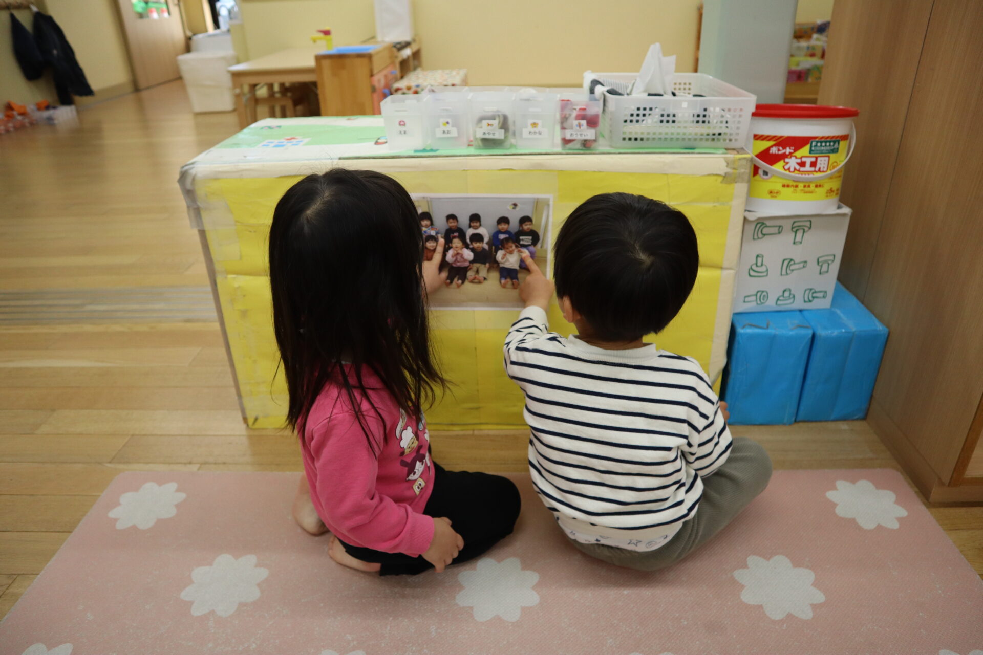 だいち組の集合写真をクラスに貼ると友達の名前を指さしながら「〇〇ちゃん!」「可愛いね』と2人の会話が可愛かったです☺️