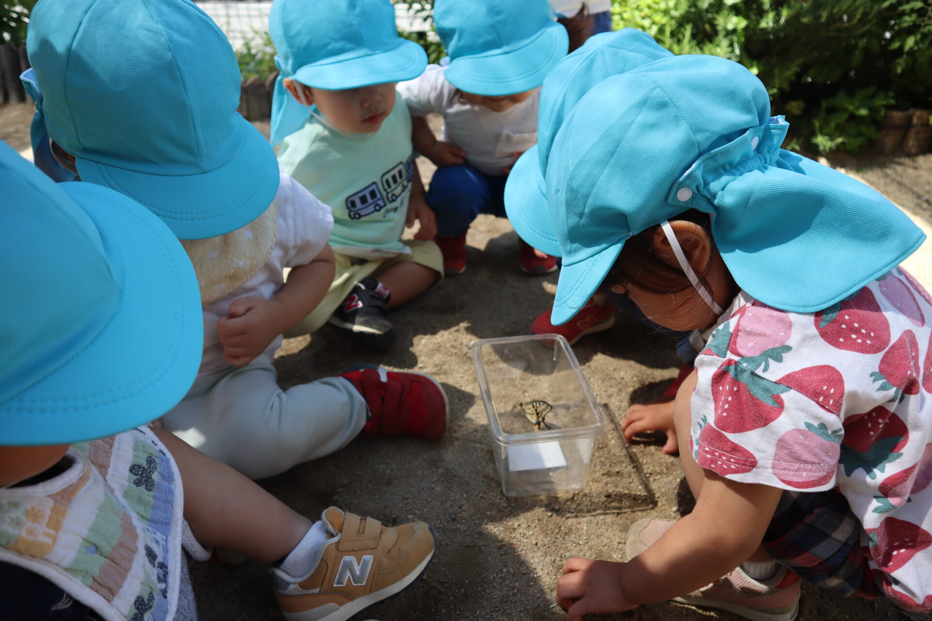 子ども達も嬉しく蝶々を見て指を差して教えてくれたり、両手で蝶々を作りひらひらと手を動かしていました。