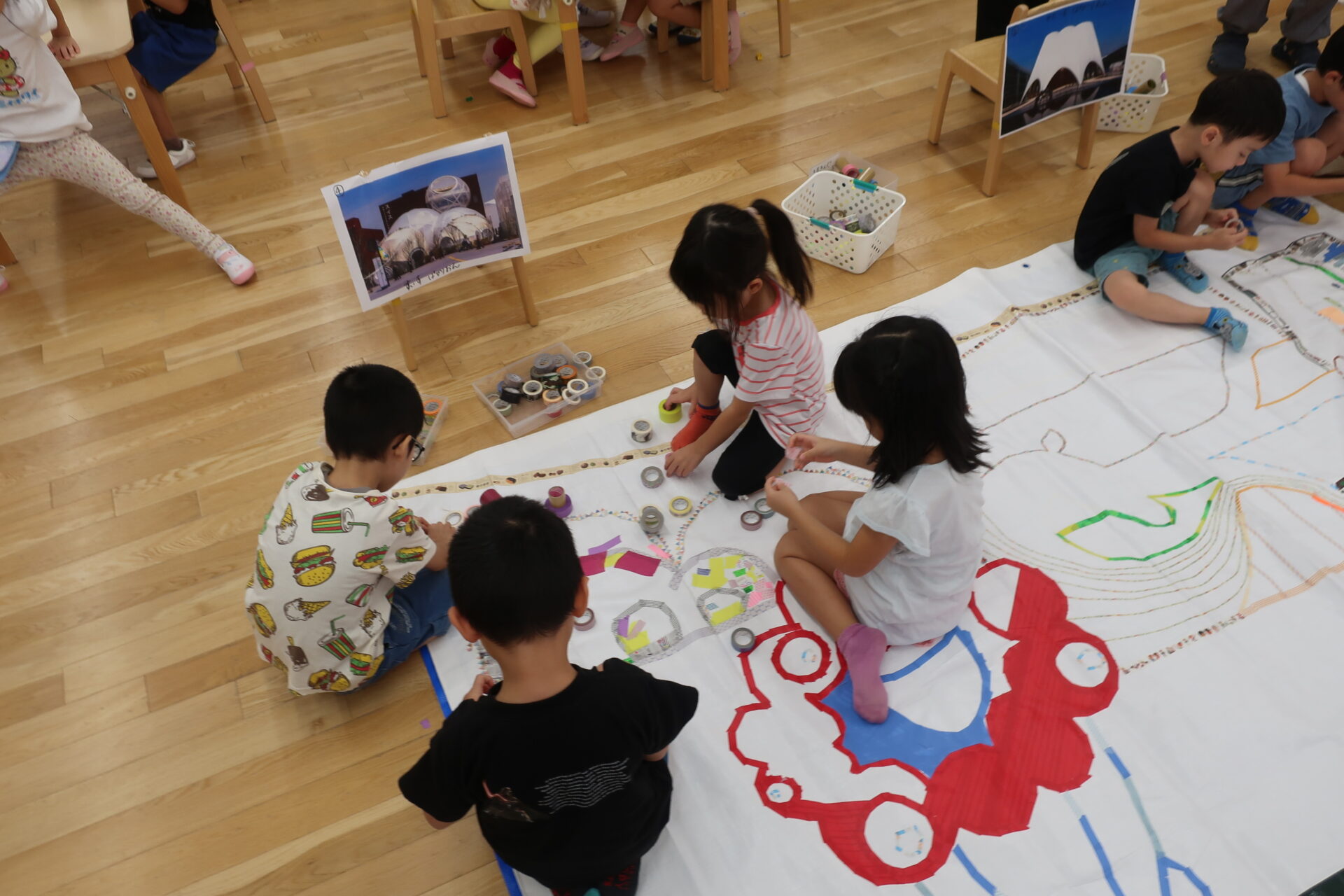 また、たくさんのマスキングテープを用いたことで子ども達が本来持っている表現力や創造力も刺激され、いつもより楽しんで制作に取り組む姿が見られたように思います。
