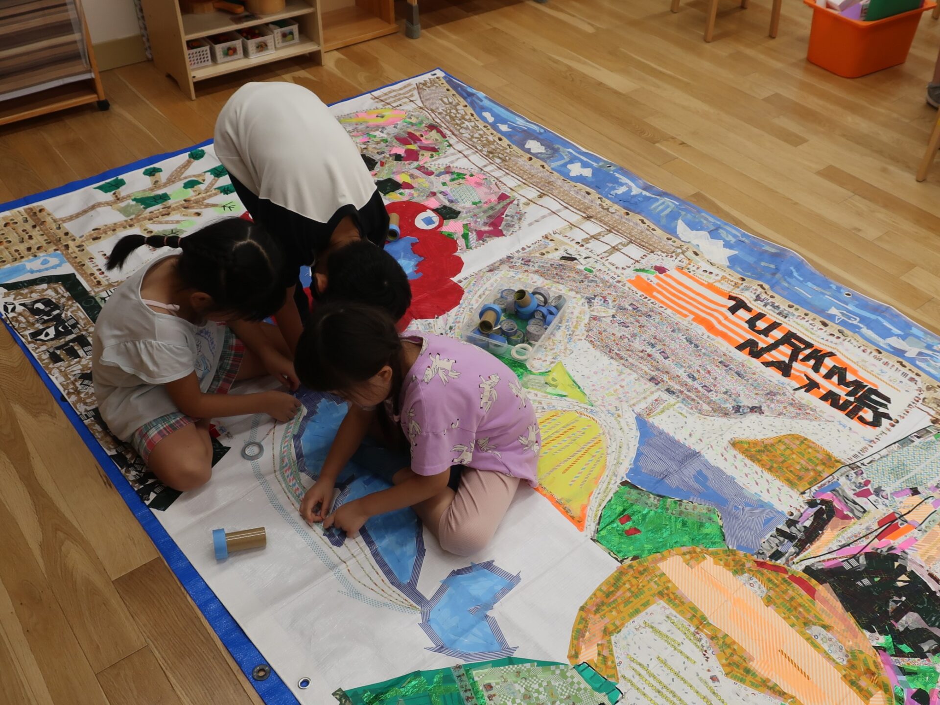 あれだけ大きな真っ白なシートでも、みんなで力を合わせればこんなに素敵な作品を仕上げることができました。