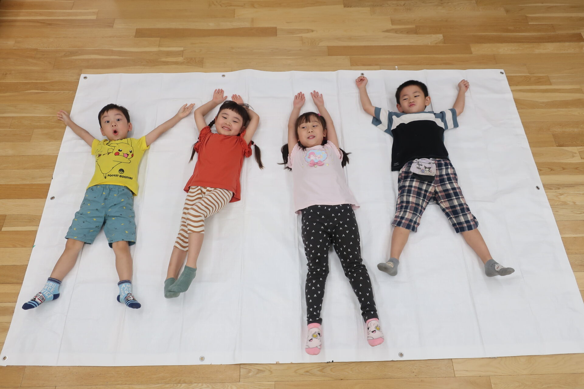子ども達が4人寝転んでも余るぐらいの大きさのシート。