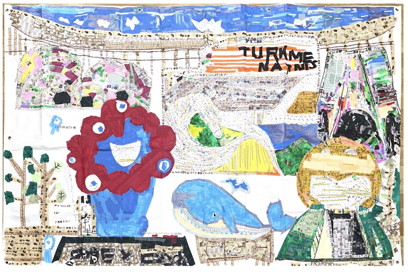 カラフルな【トルクメニスタン】や【吉本館】のパビリオンに、子ども達が大好きなミャクミャクのモニュメントやオリジナルくじらのモニュメントも表現しました。