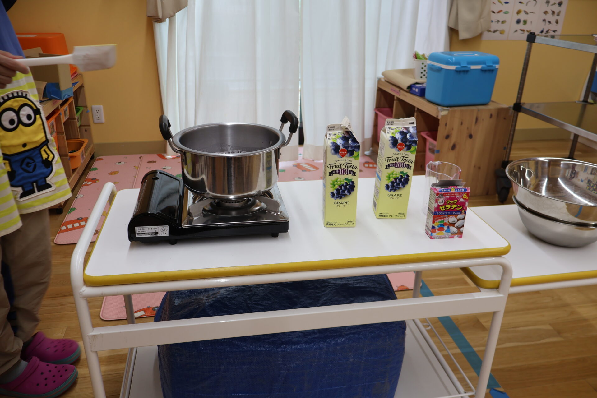初めて、ゼリーのもとである、ゼラチンからゼリーを作る様子を見学しました。