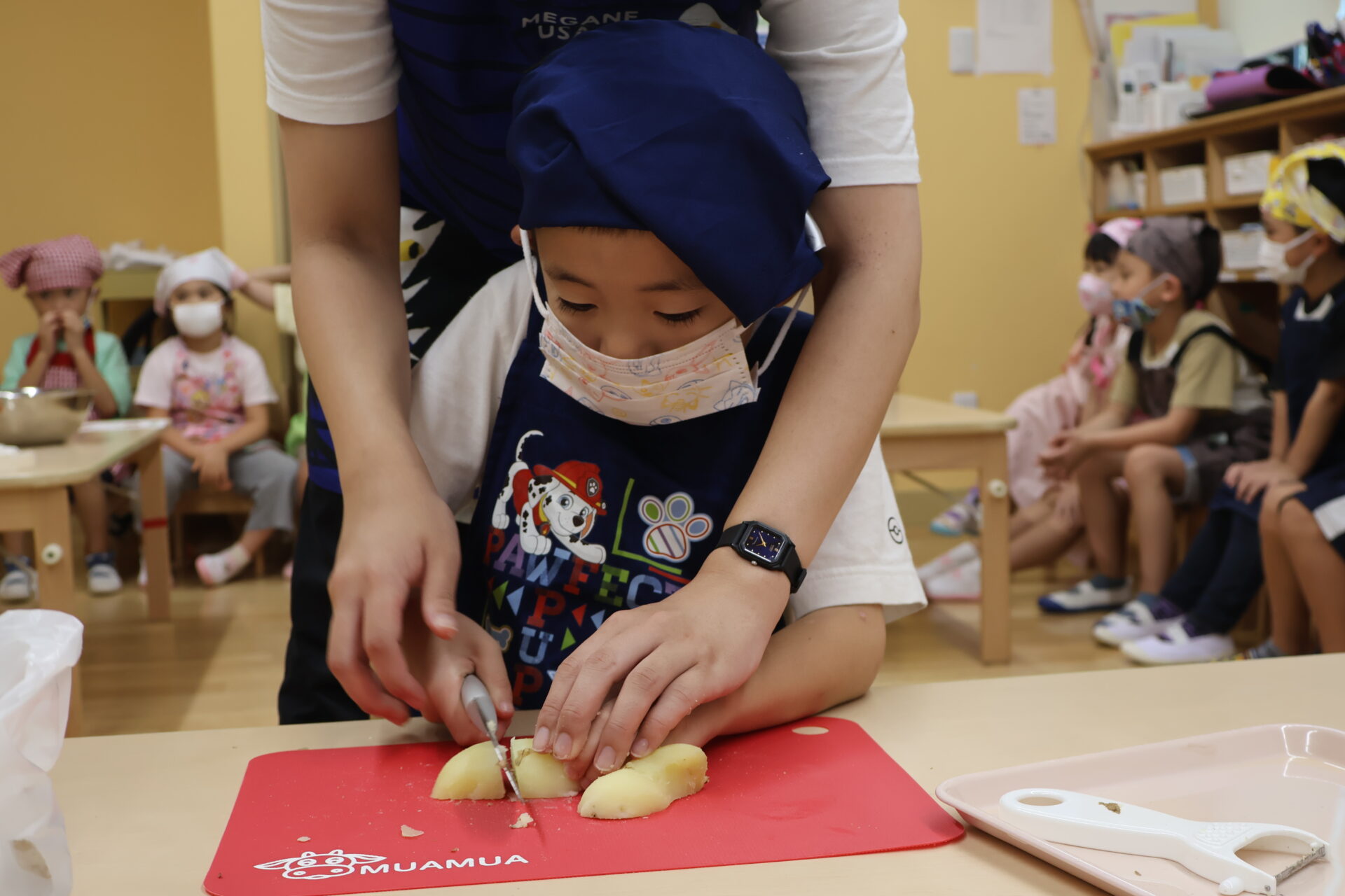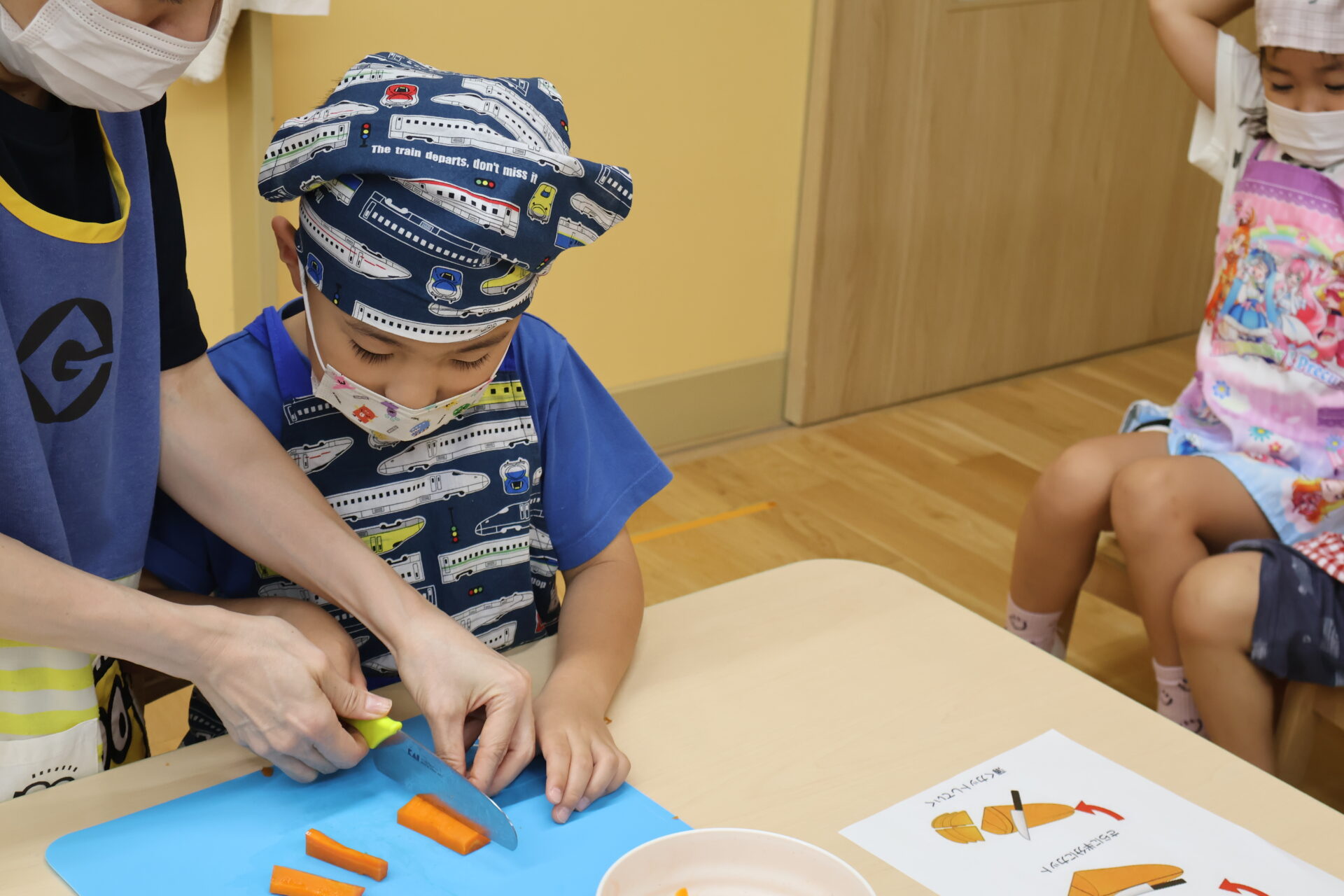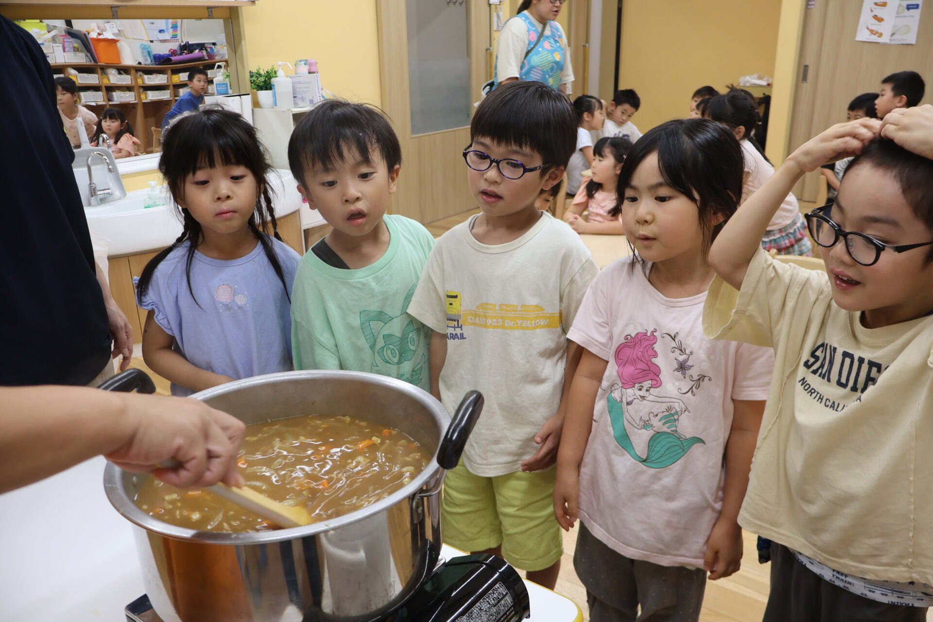初めて包丁を使ったクッキング、力を合わせて作る楽しさ、カレーになる過程を知る事などの経験が、子ども達の自信へと繋がっていることを感じました。