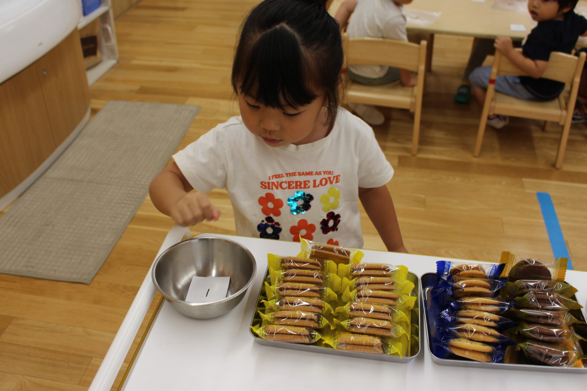 クッキーは3種類もある為、「どれにしよう…」と悩む子もいましたが、お買い物の際に『クッキー担当』だった子達は「これだった!」とお買い物の時の事を思い出し即決する子も多くいました。