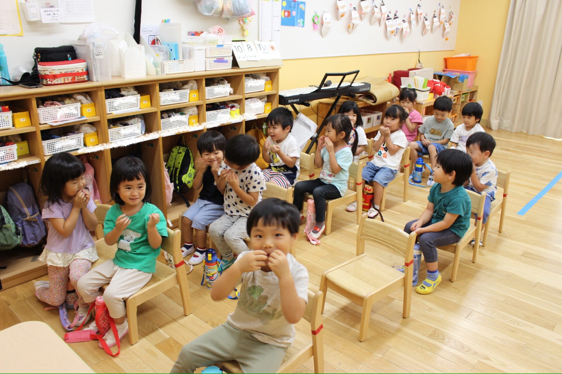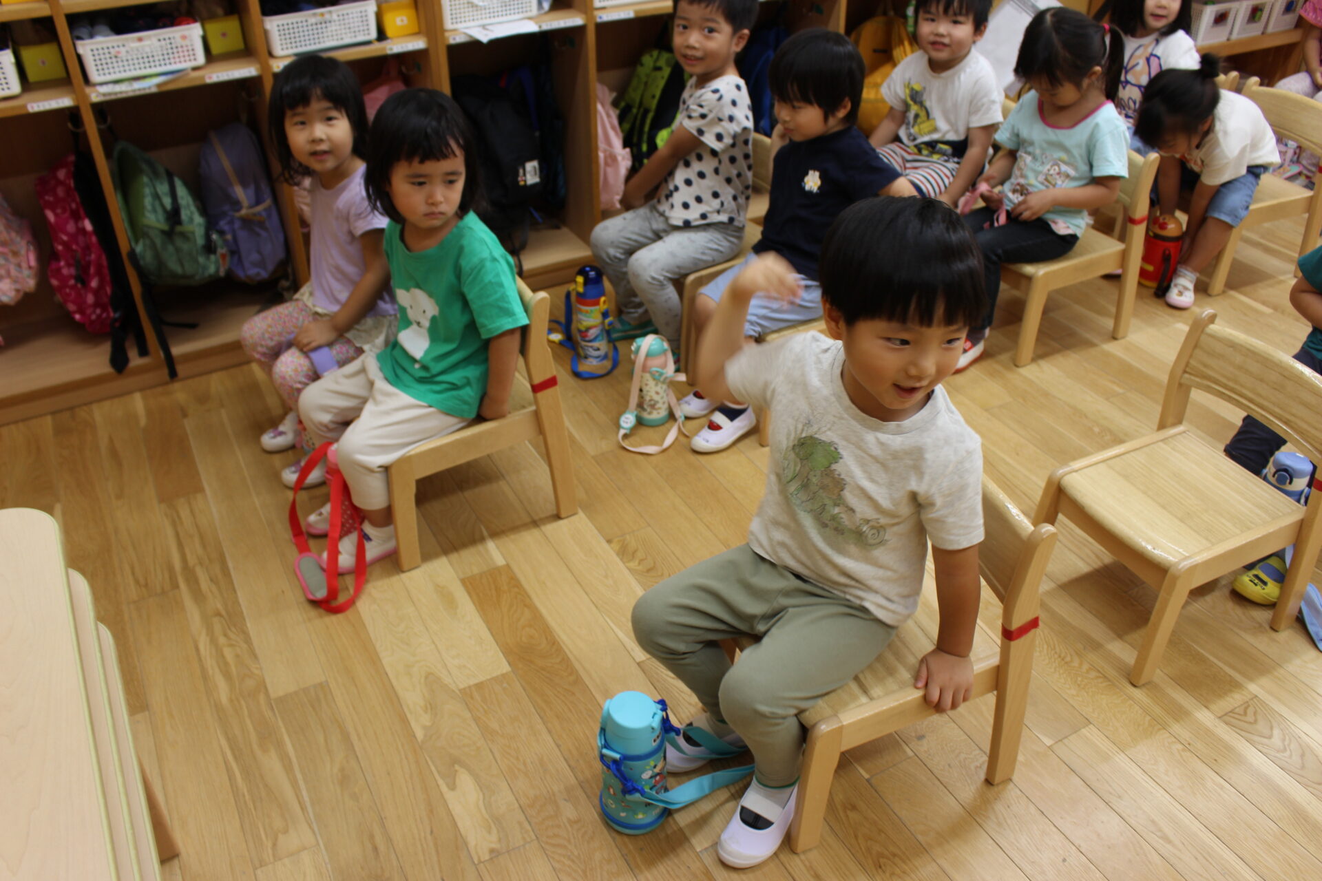 「オムライスのおにぎりにするの!」と明日のおにぎりの具を教え合う姿からは、『明日の遠足が楽しみ!』という気持ちが溢れていました。