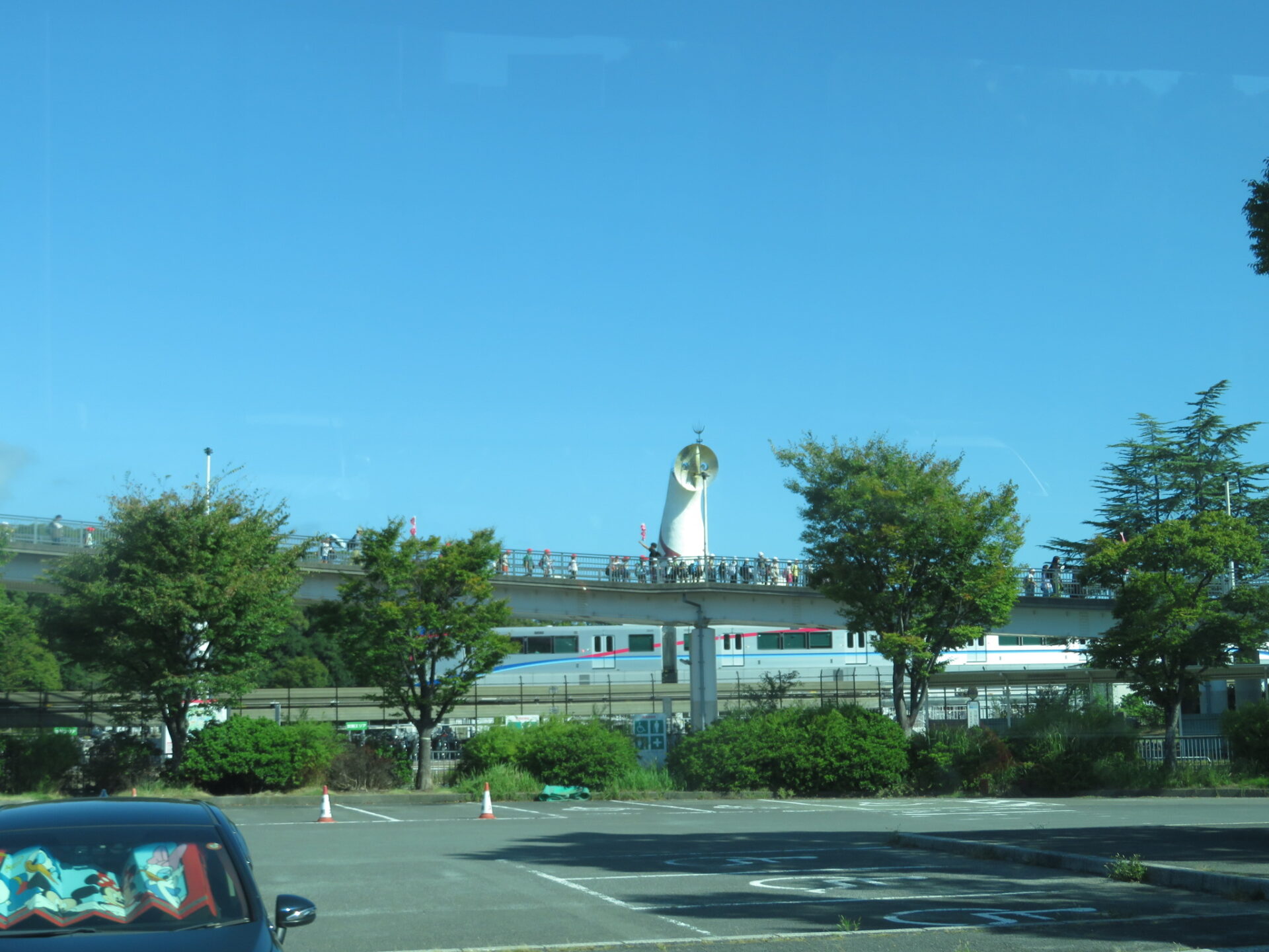 万博カラーの装飾が施されたモノレールも走っており、「万博や!」「ミャクミャクがいる!」と喜んでいました。