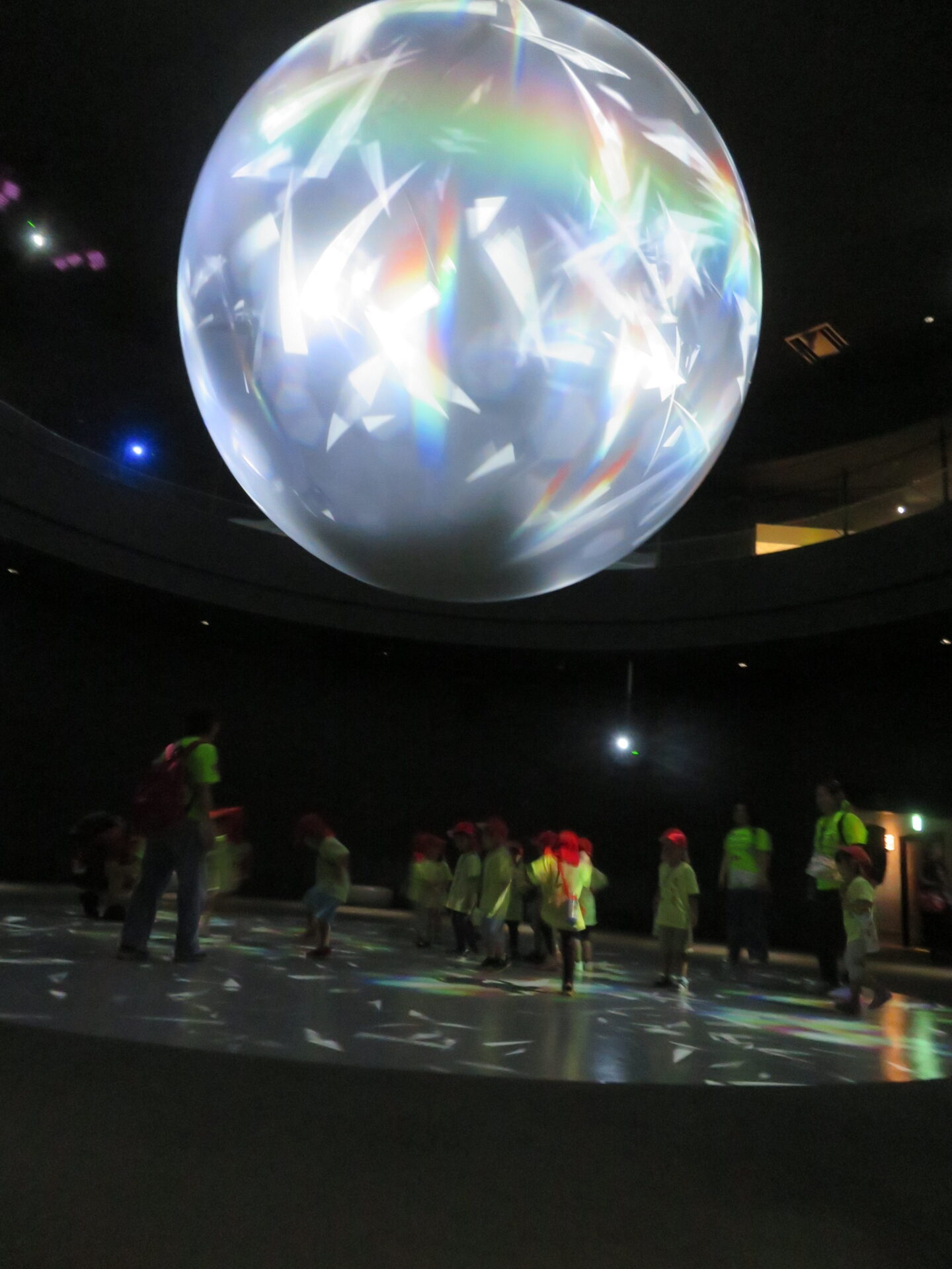こちらのブースも暗いのですが、球体の光が反射して床がキラキラと光っており、足踏みをして楽しんでいました。