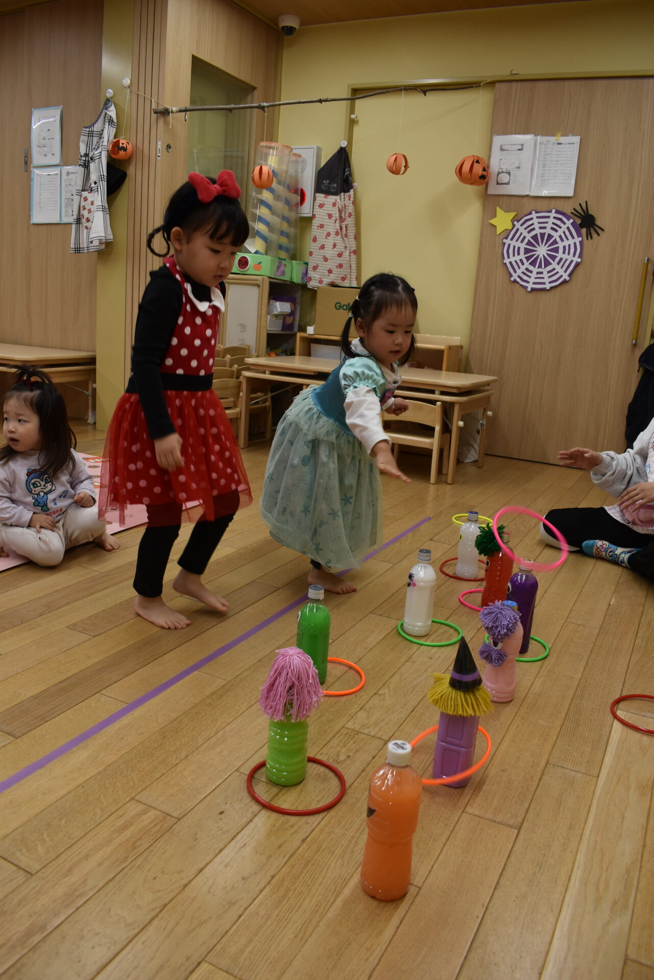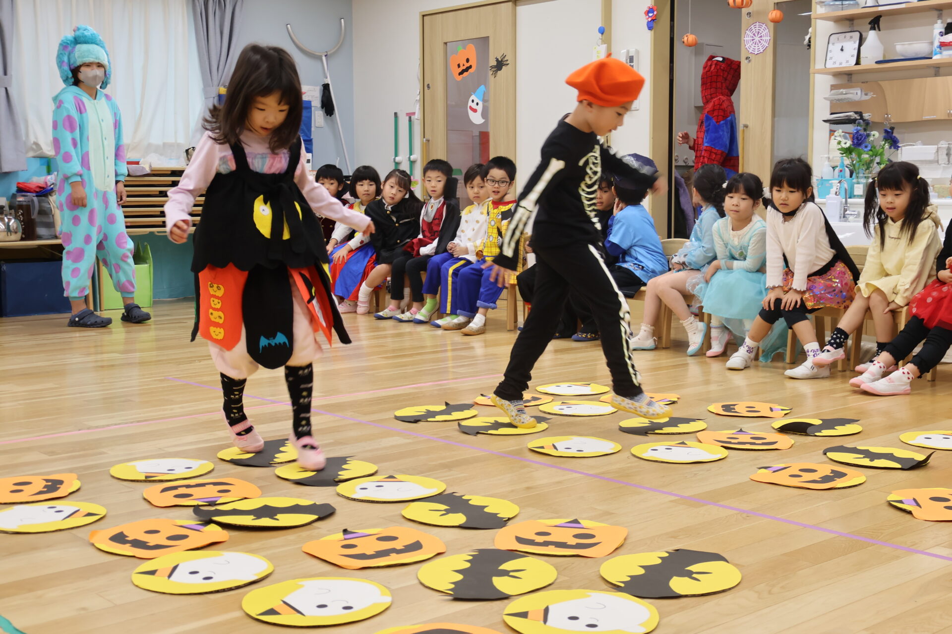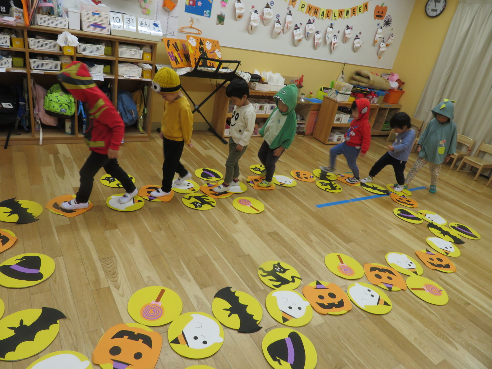 そら組、くじら組はどちらが先にゴールに辿り着けるか競って楽しみました🎃