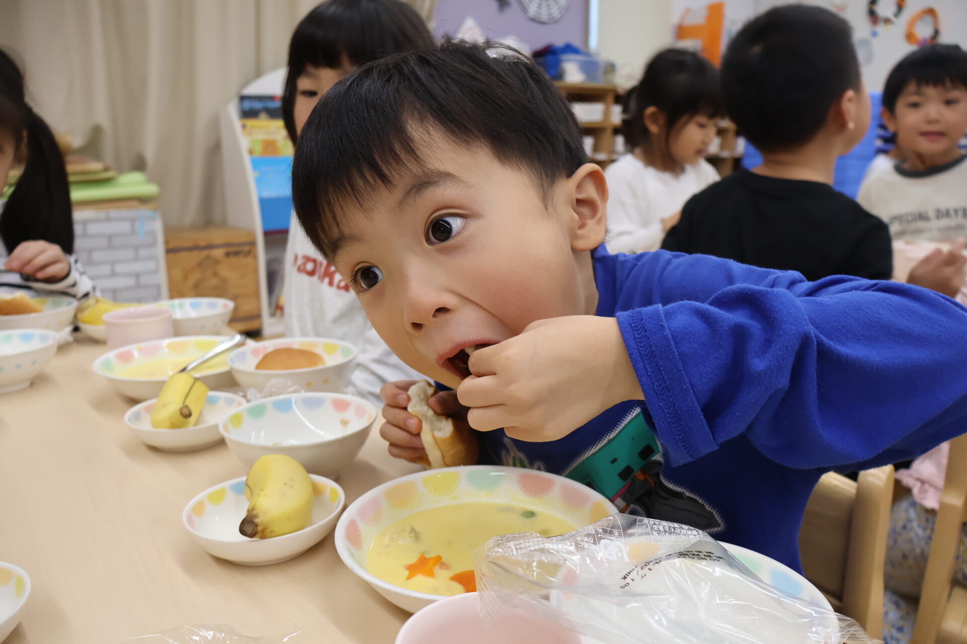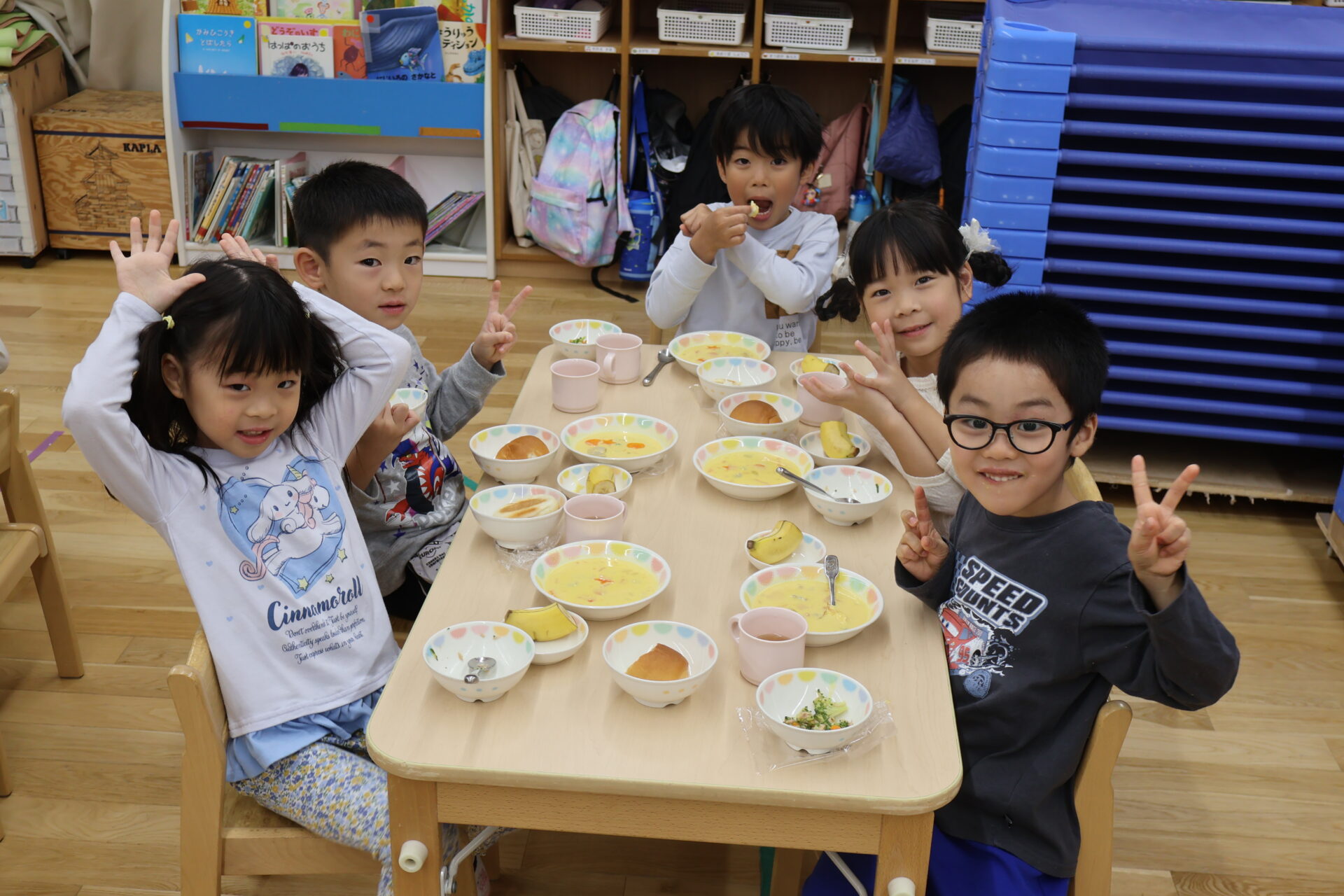 たくさんゲームを楽しんだ後はお待ちかねの給食タイム♪
