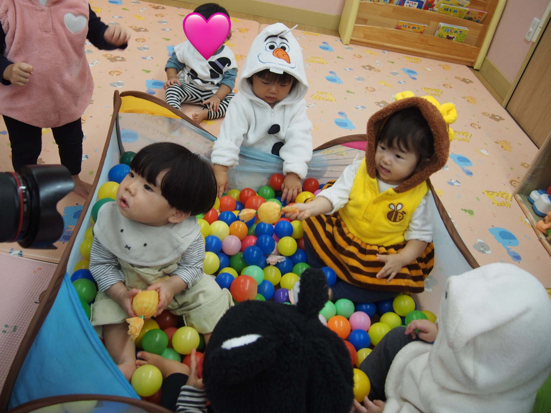 ボールプールの中に隠れたキャンディーを見つけれて嬉しそうなこどもたち♪