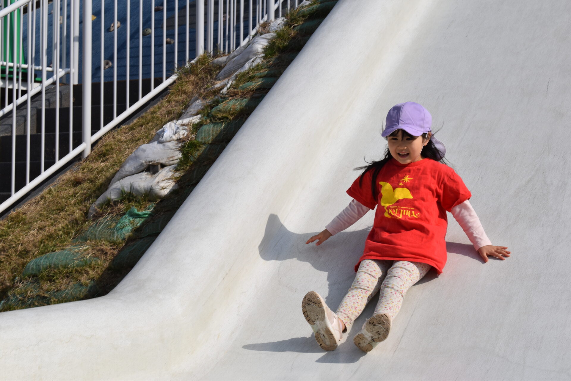 最初は「ちょっと怖いからやめとこうかな…」と話していた子どもも、お友だちが楽しそうに滑っている様子を見て挑戦していましたよ。