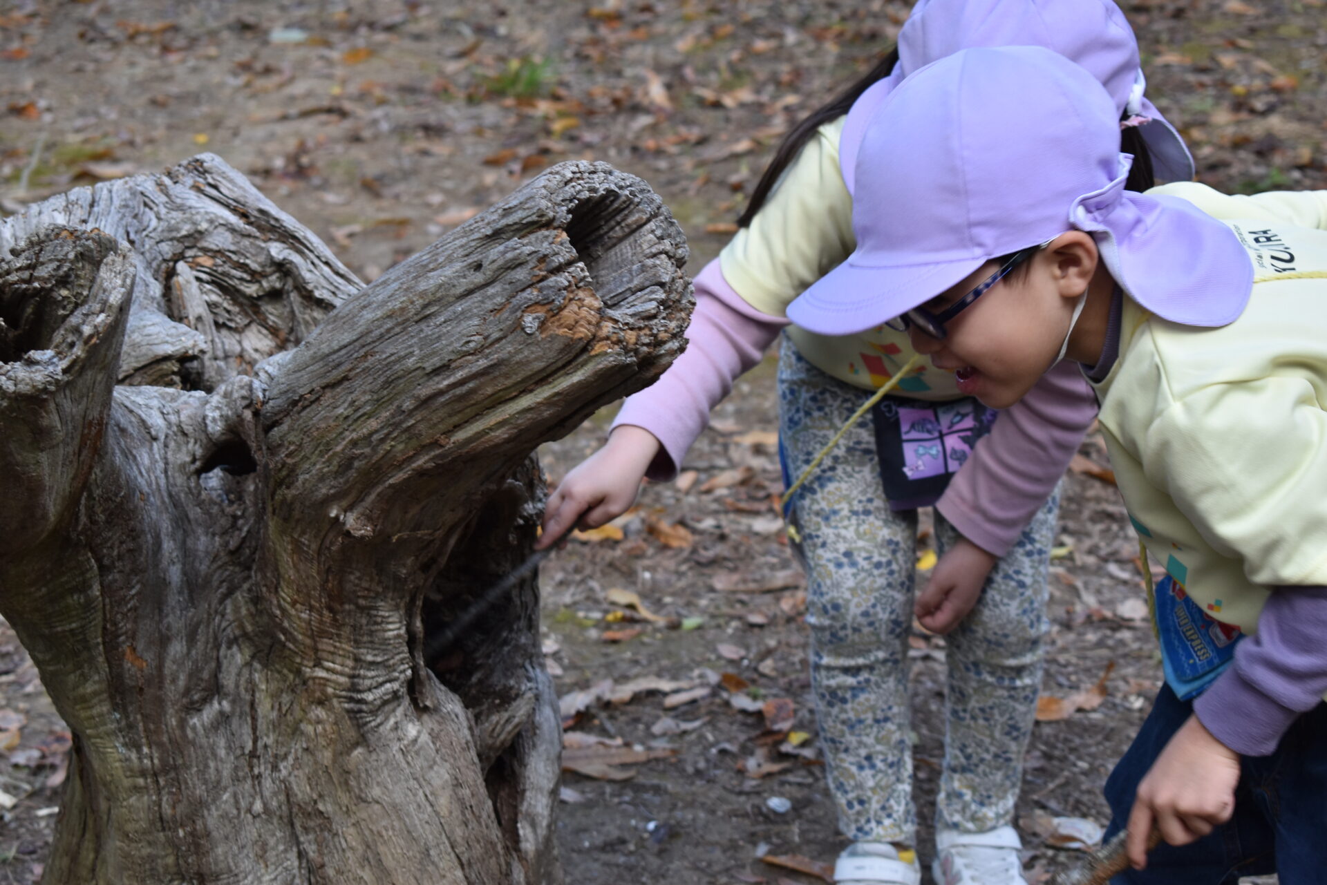 今回の遠足では、自然に囲まれた場所でたくさん遊んだ中で、様々な自然物に触れることができましたよ。