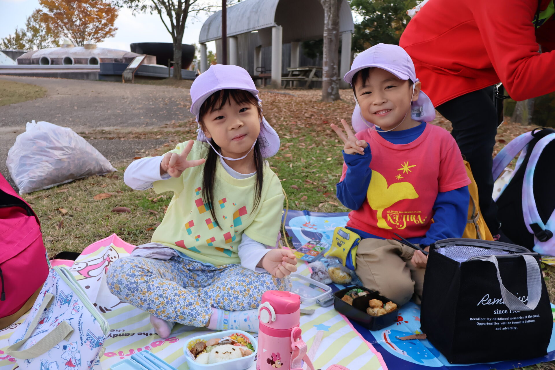 お友だちと一緒にレジャーシートを並べて、「いただきま~す!」