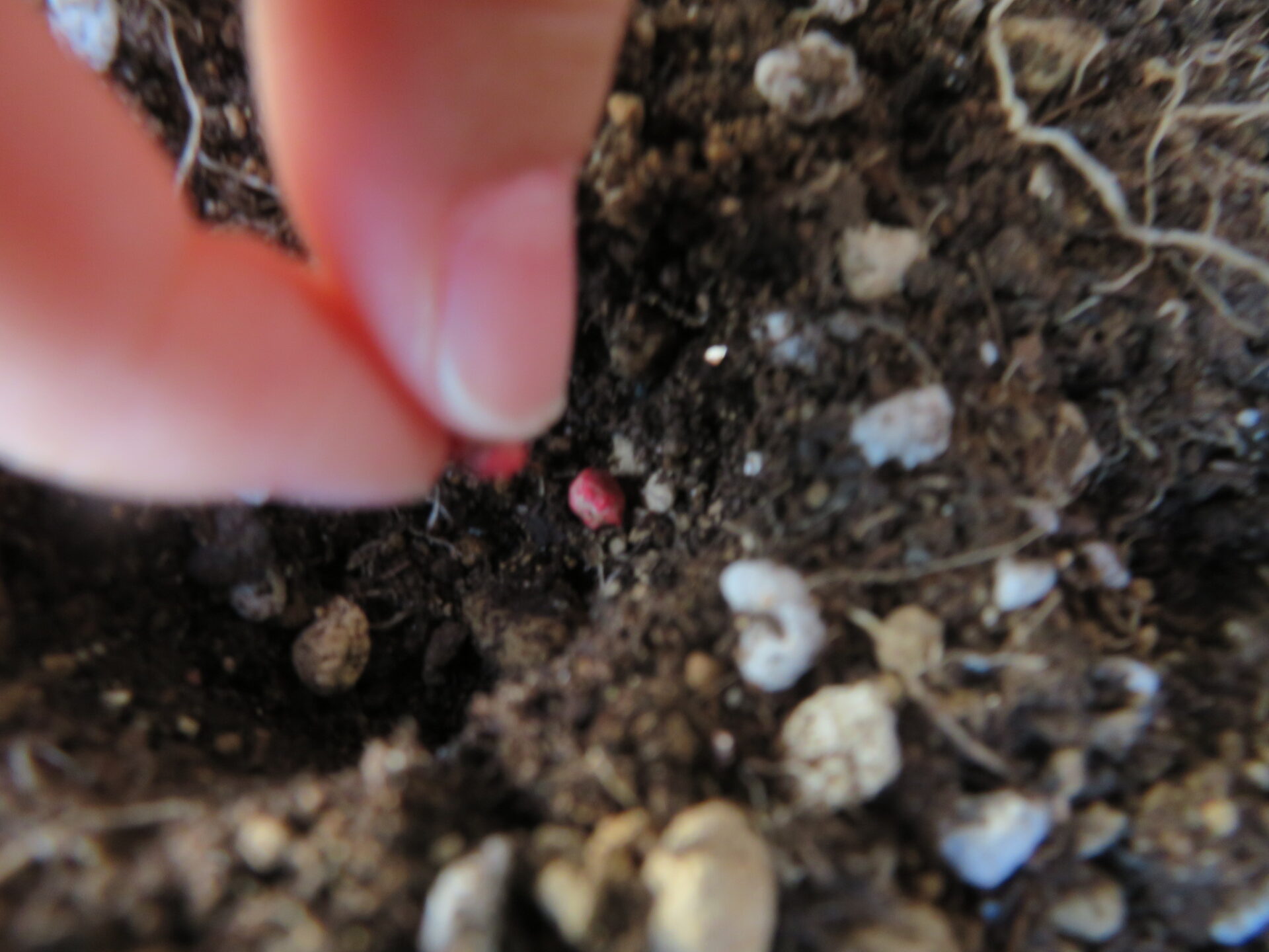 「ほうれん草のタネって、赤いんだね!」と、初めて見るほうれん草のタネの形、色に興味を示し、