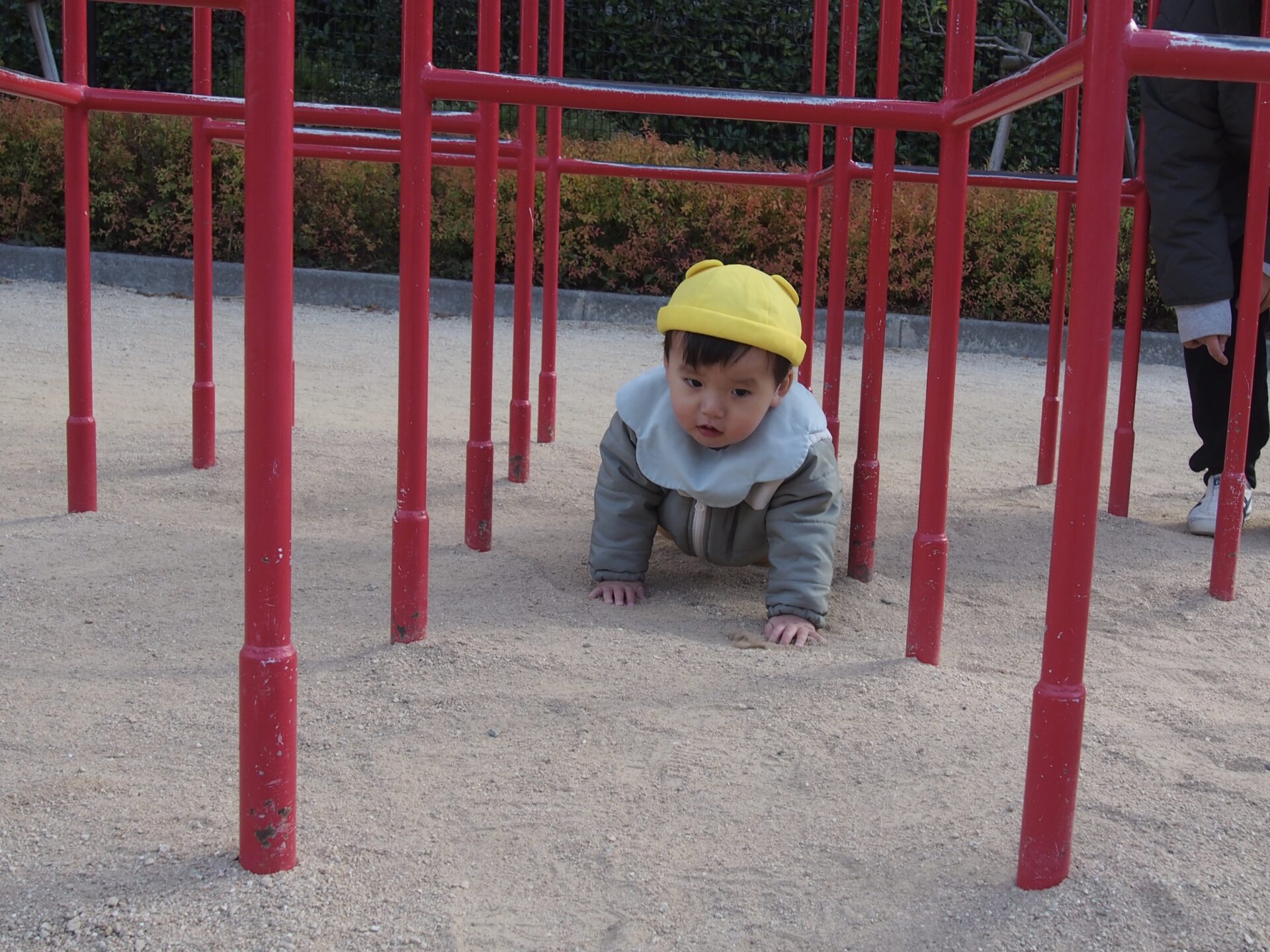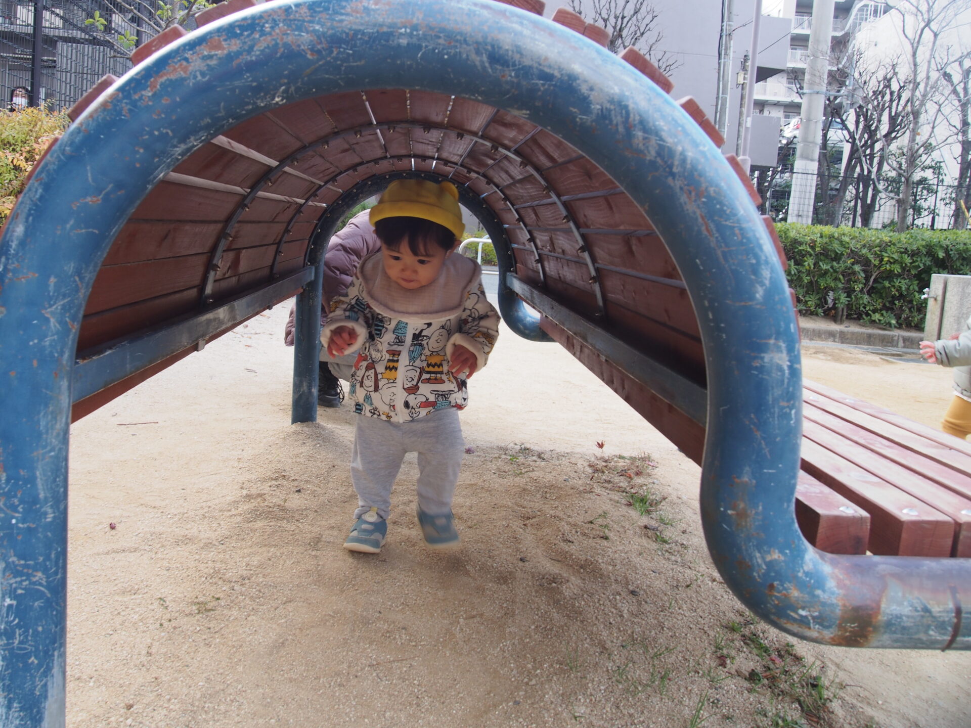 頭が当たらなように屈んで入り、中ではハイハイで散策しました。