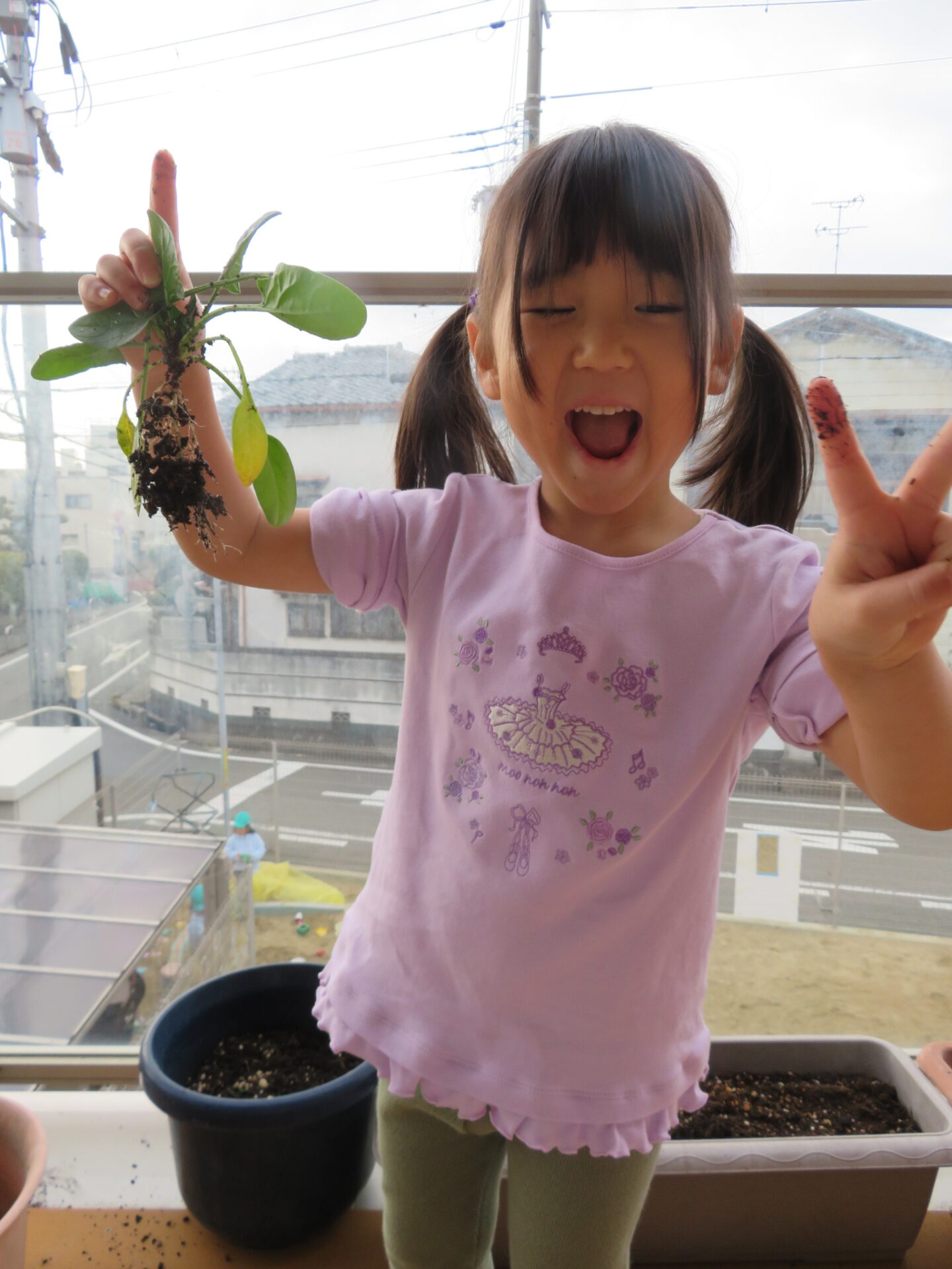 「すごい!いっぱい土がついてるね!」と嬉しそうです。