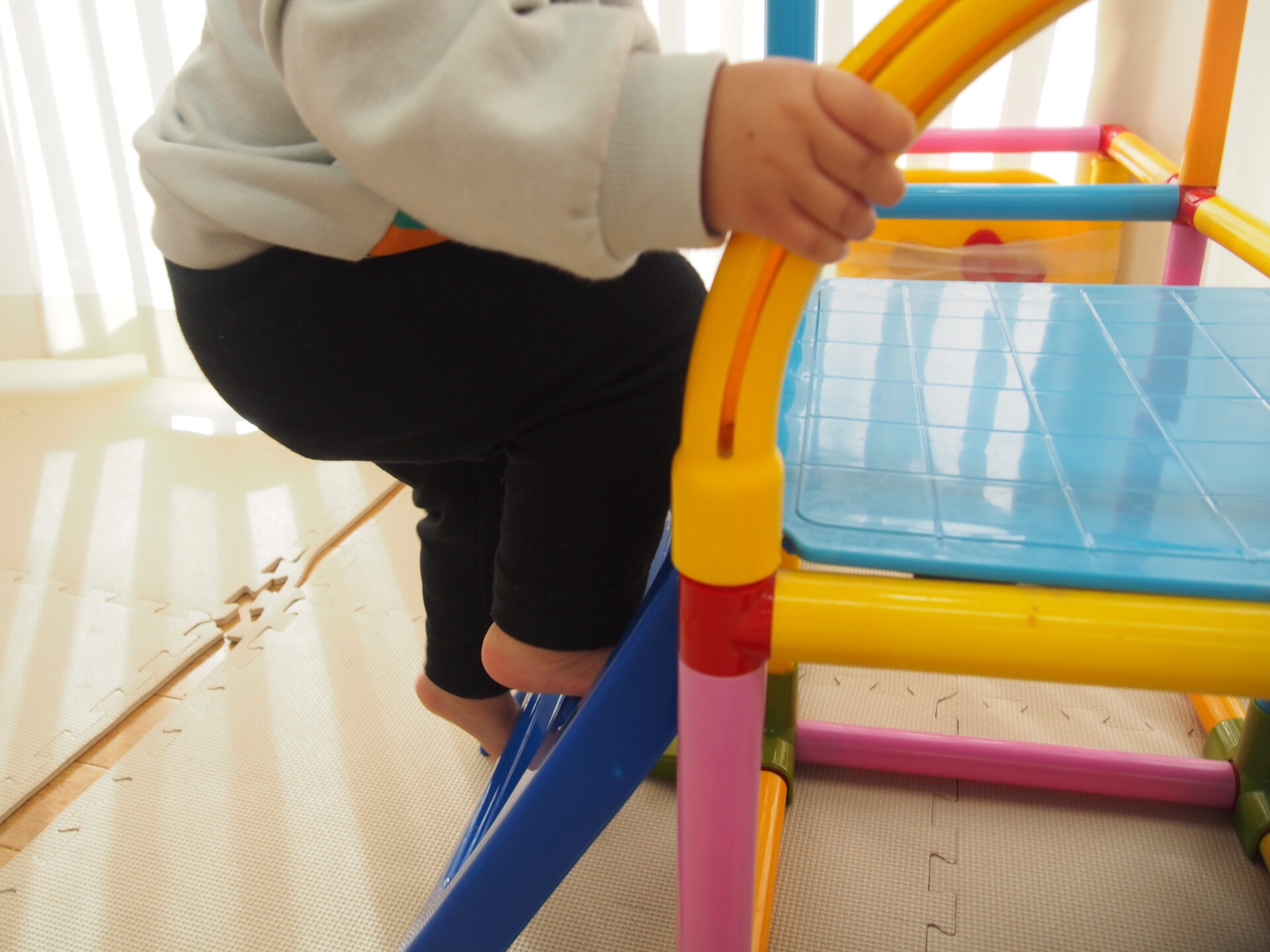 最近は公園に行き、遊具で遊ぶ機会が多くなってきたので、室内用の「ジャングルジム」に取り組んでみることに。