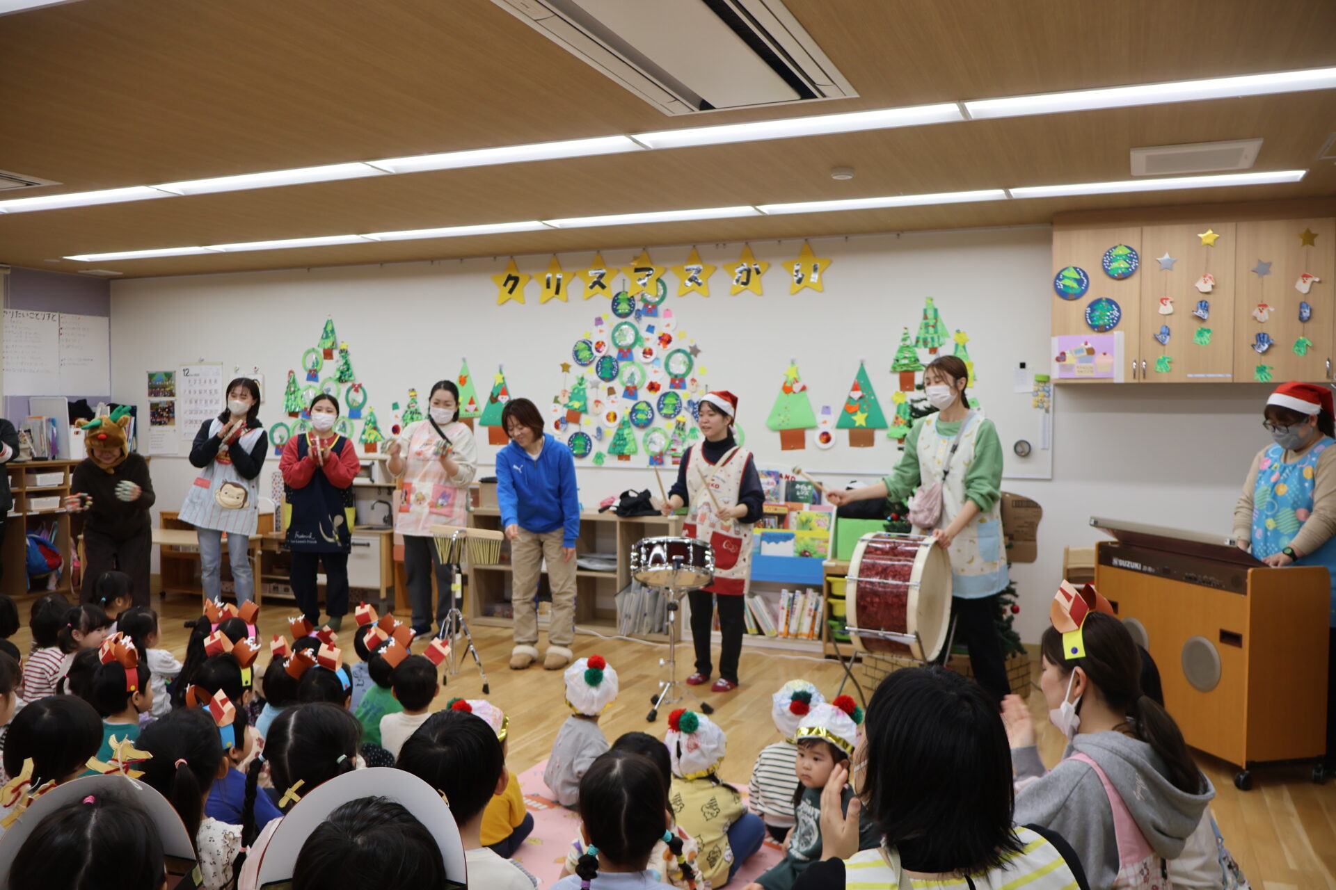 一番は保育士による出し物『クリスマスメドレーの合奏』です♬