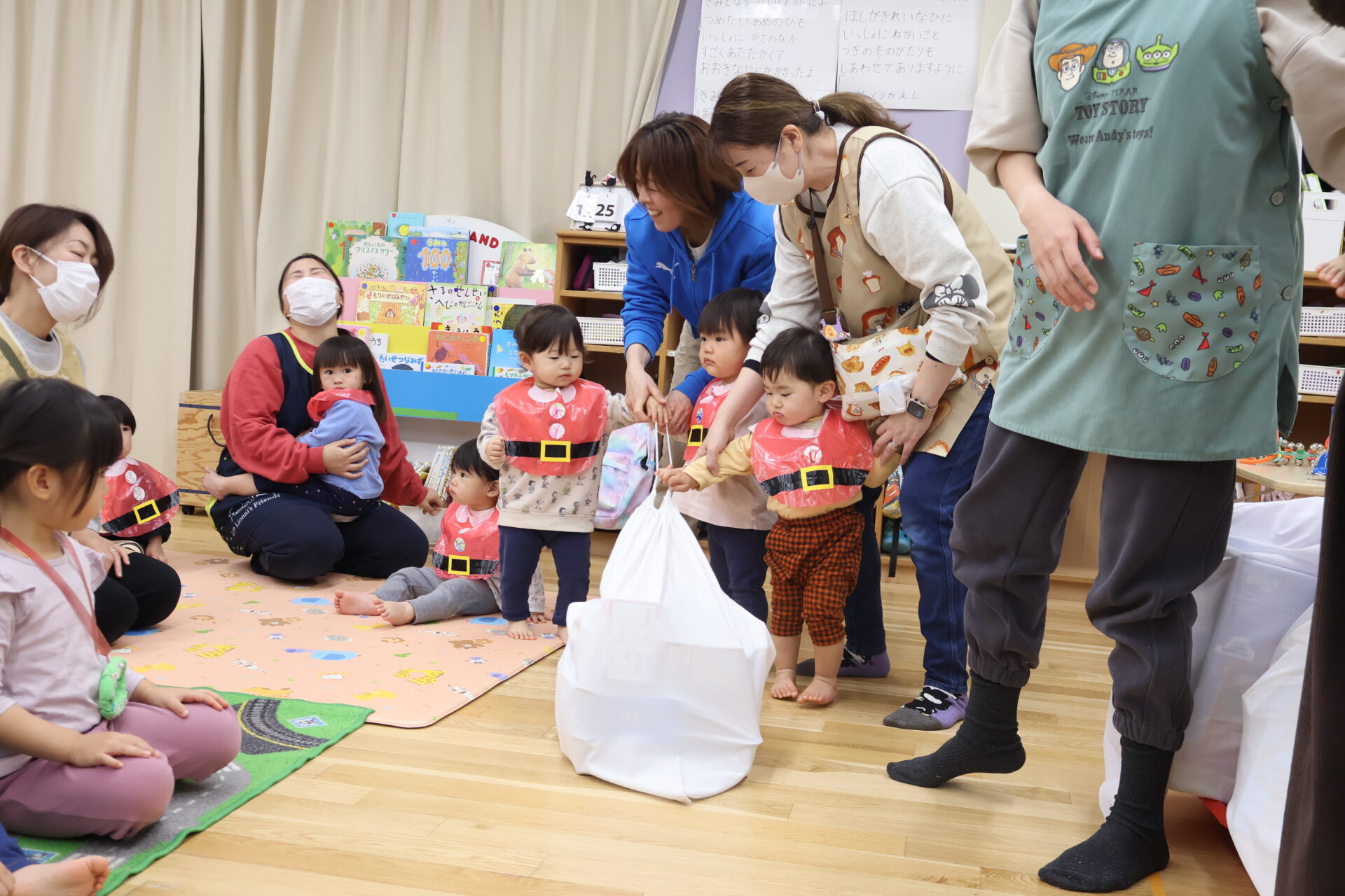 たっくさんのプレゼントを持ったサンタさんが登場し、子ども達は大興奮です!!
