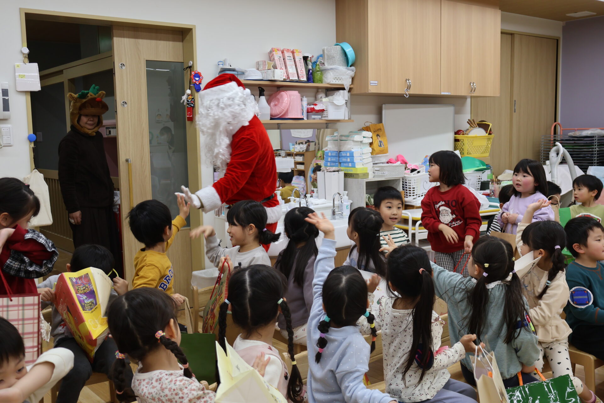 なんとトナカイさんだけだったので、今度はトナカイさんと一緒に、みんなで声を合わせて「サンタさーーーん!!」と呼んでみると・・