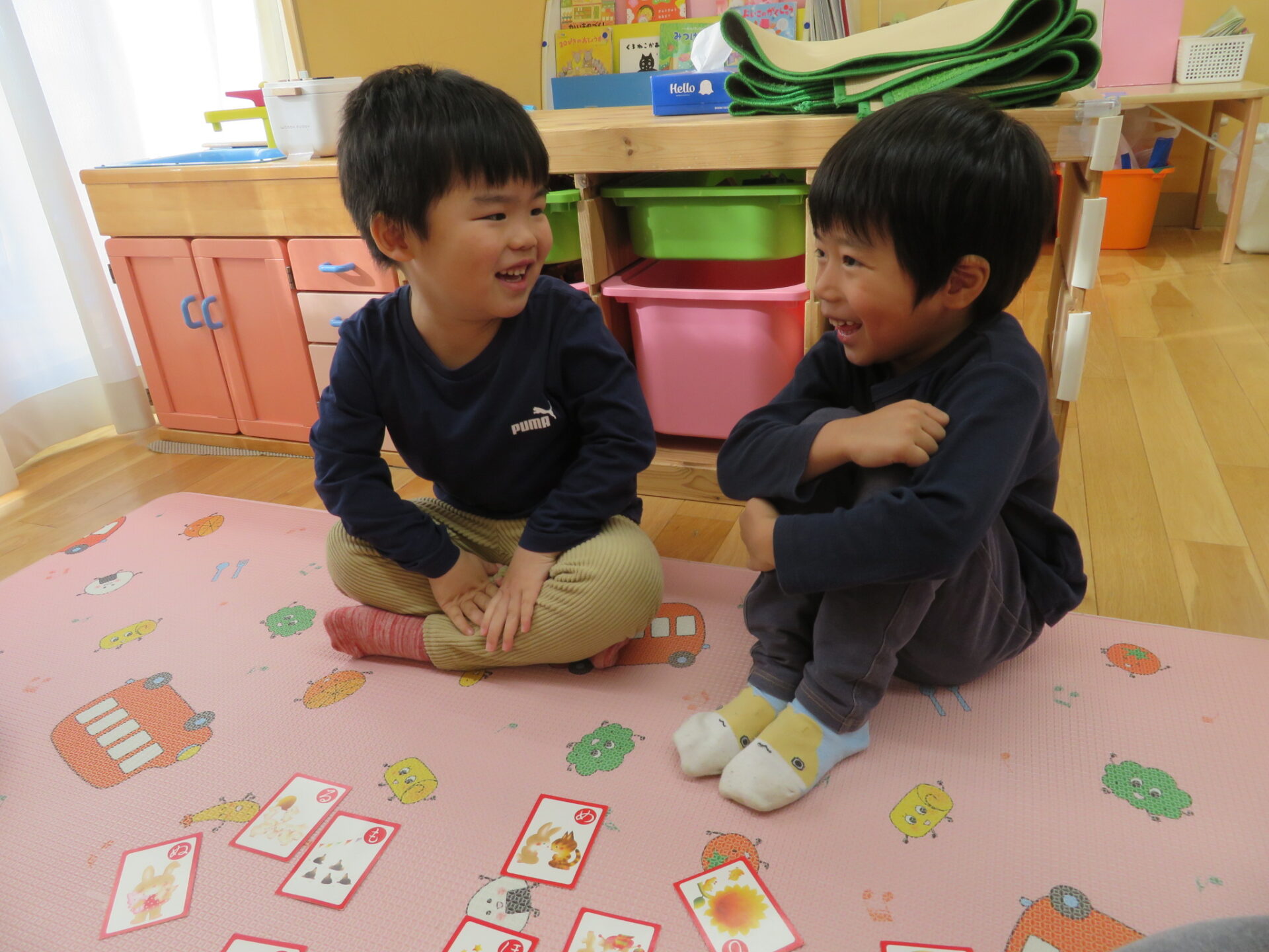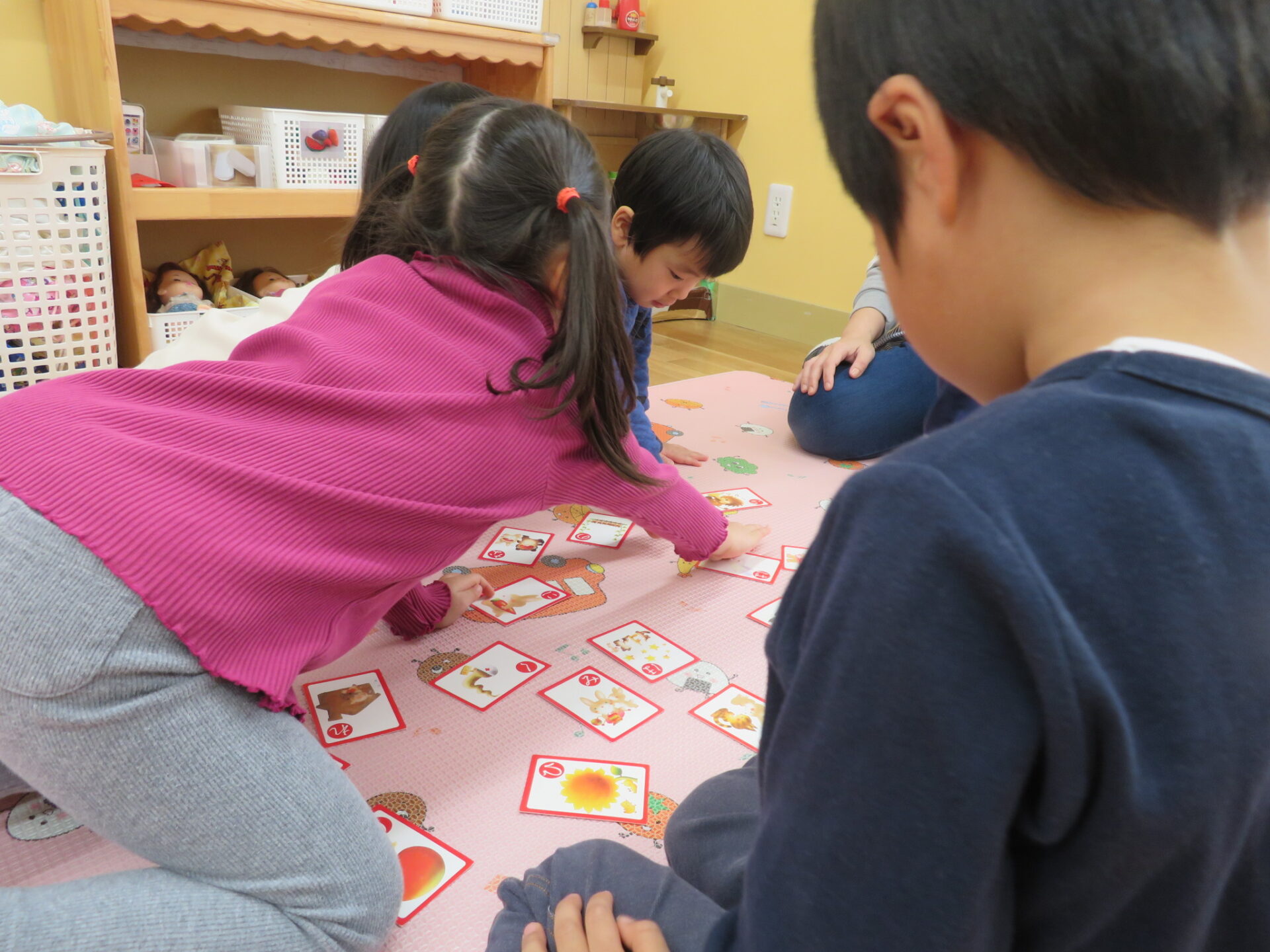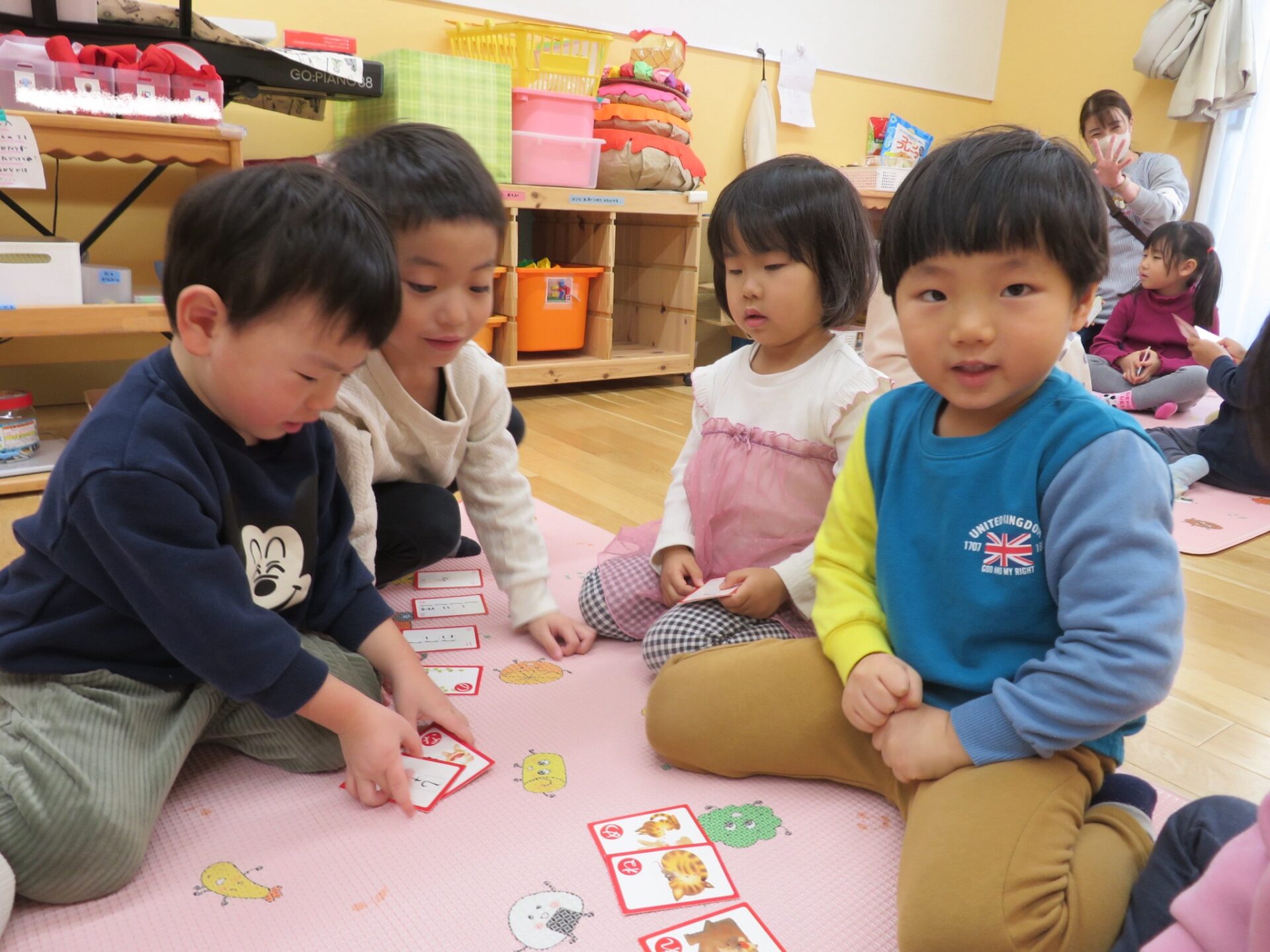 「もう一回?!やったー!」と初めてのカルタ遊びを楽しんでいました。