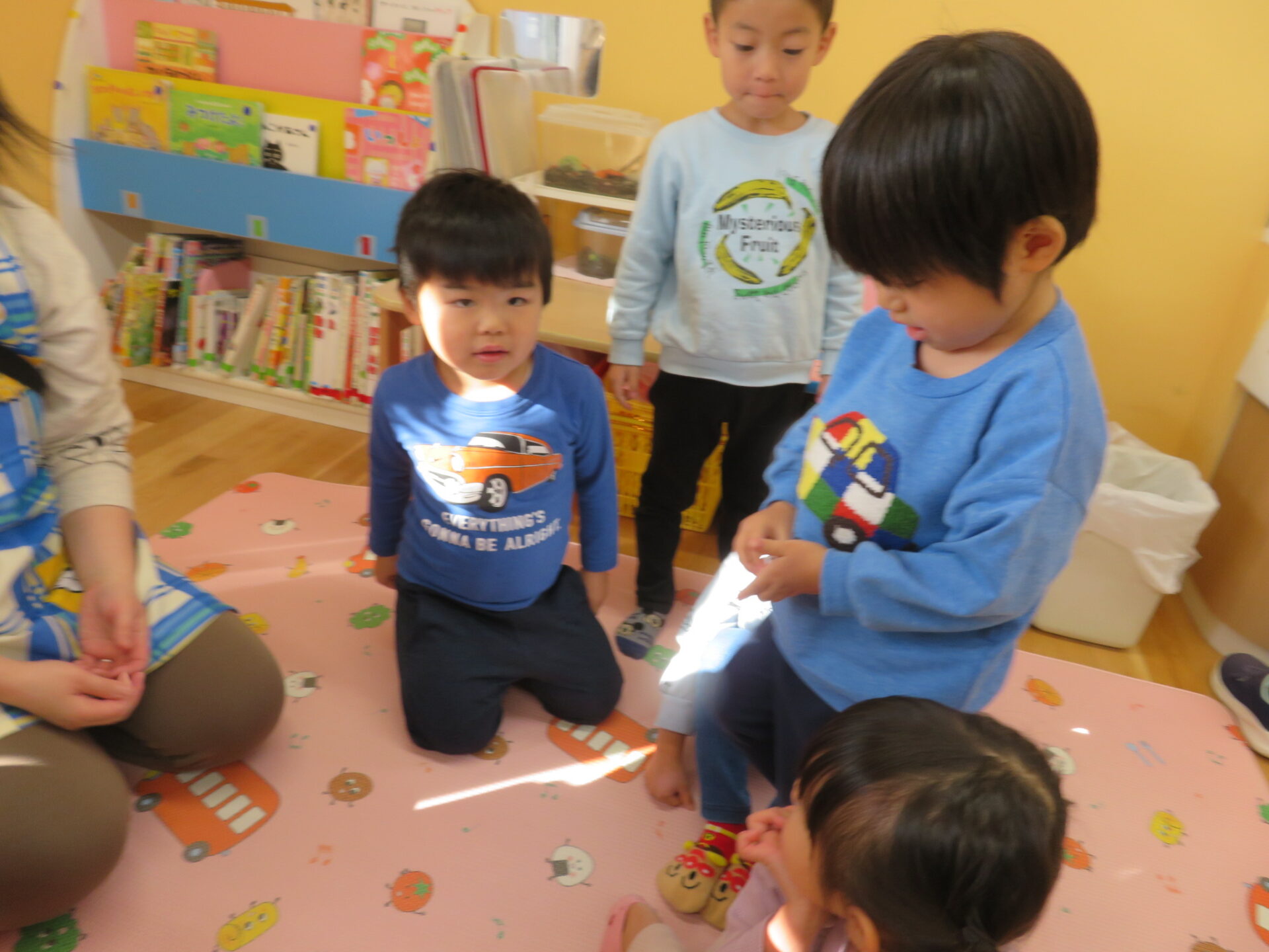 保育士が読み上げると、「うさぎ!」と大きな声で答えていました。