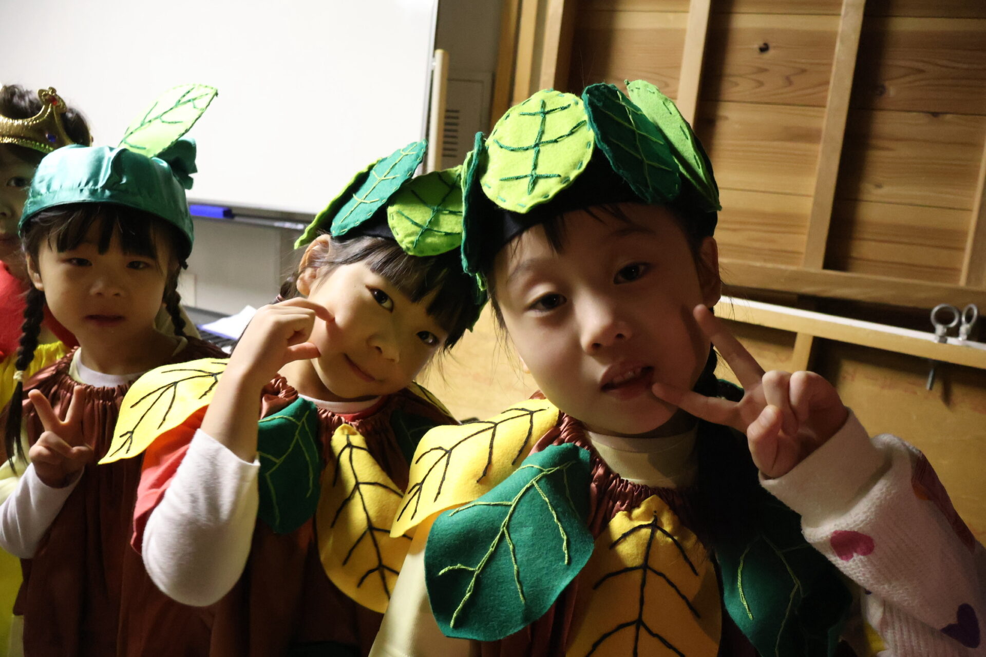 無事に里山物語を終えて楽屋に戻ると、座席にいたお父さん、お母さんを見つけた安心感や台詞をしっかりと言えた達成感から、緊張も抜けて普段通り友だちと笑い合いながらお喋りタイム♬