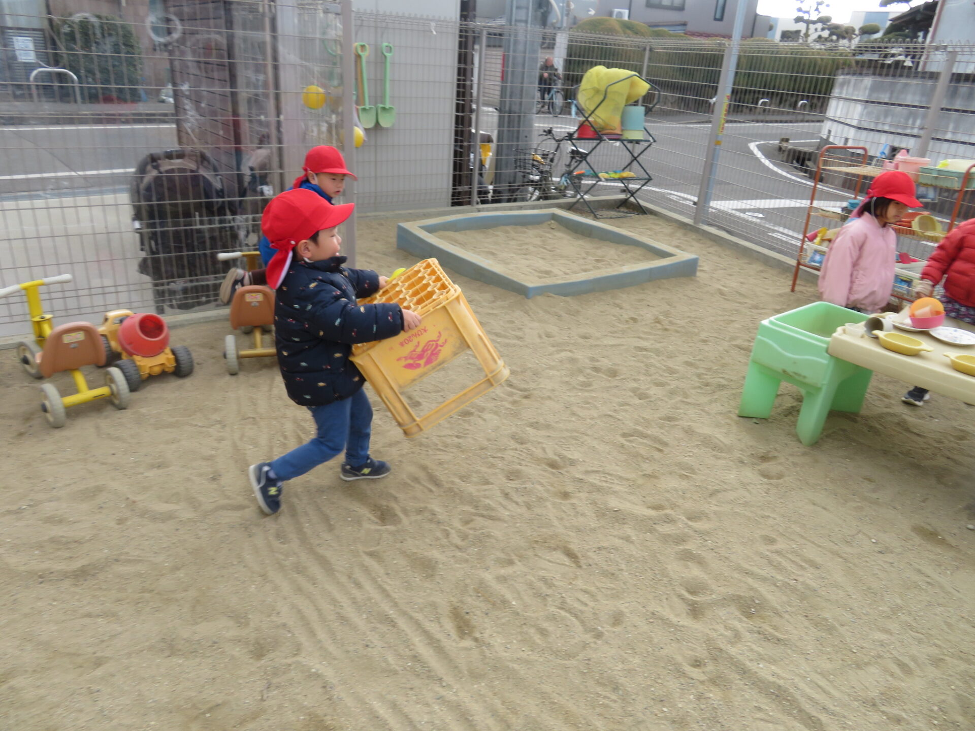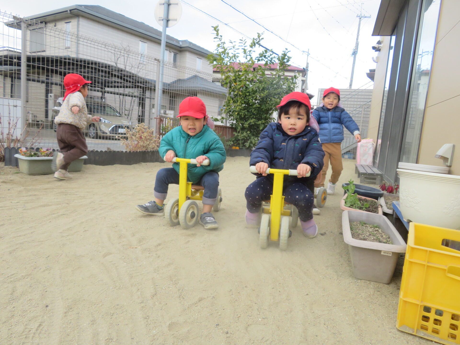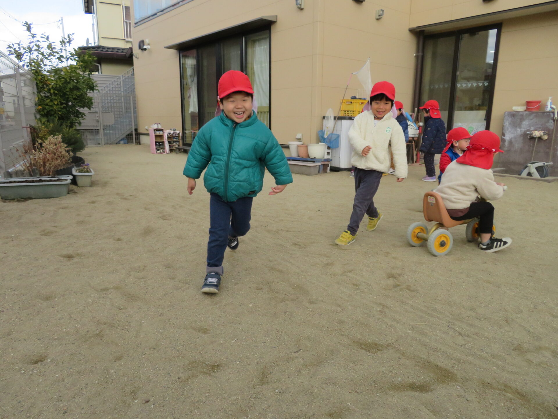 毎日寒い日が続きますが、3歳児の子ども達は園庭で元気よく遊んでいます。
