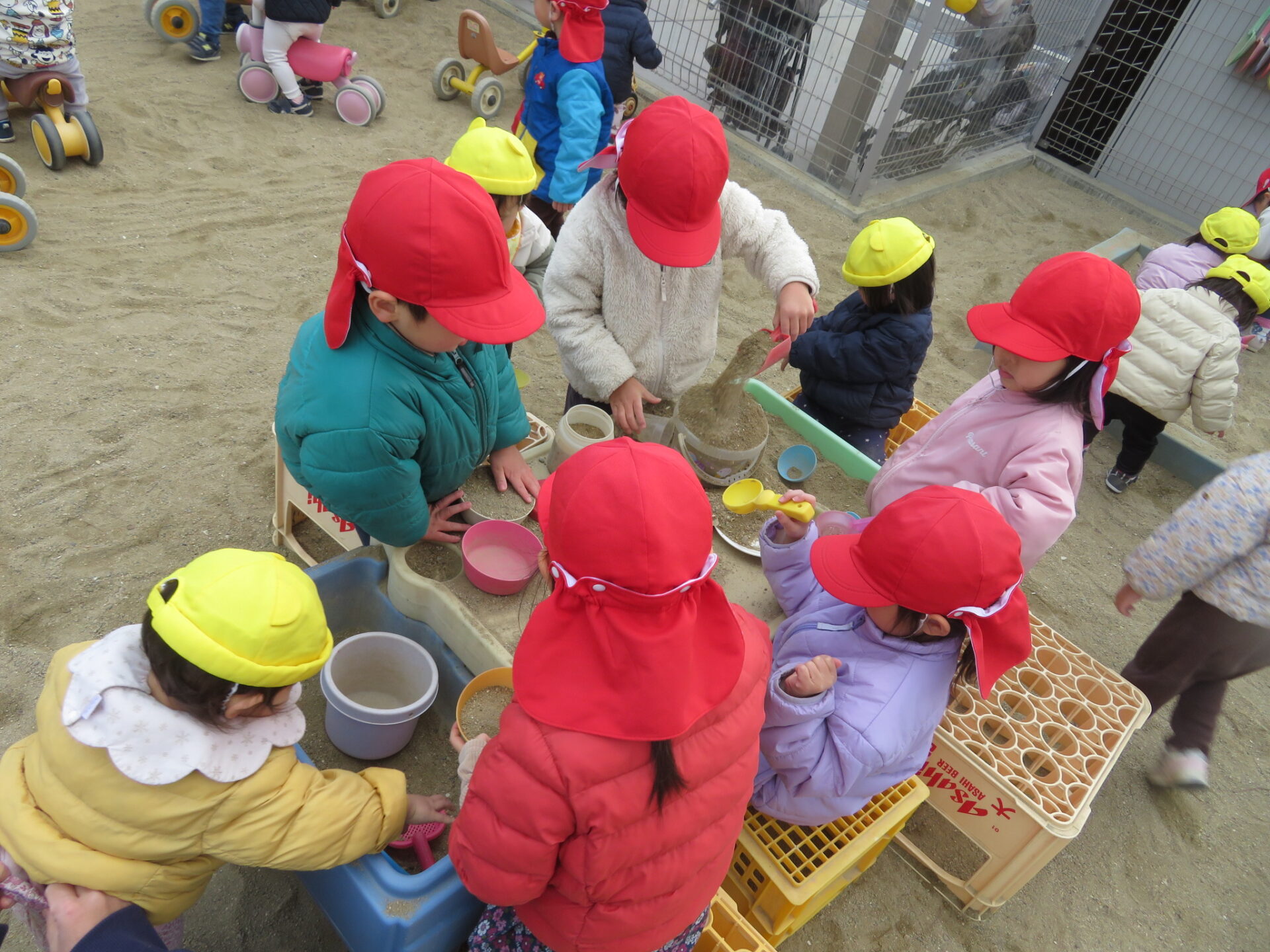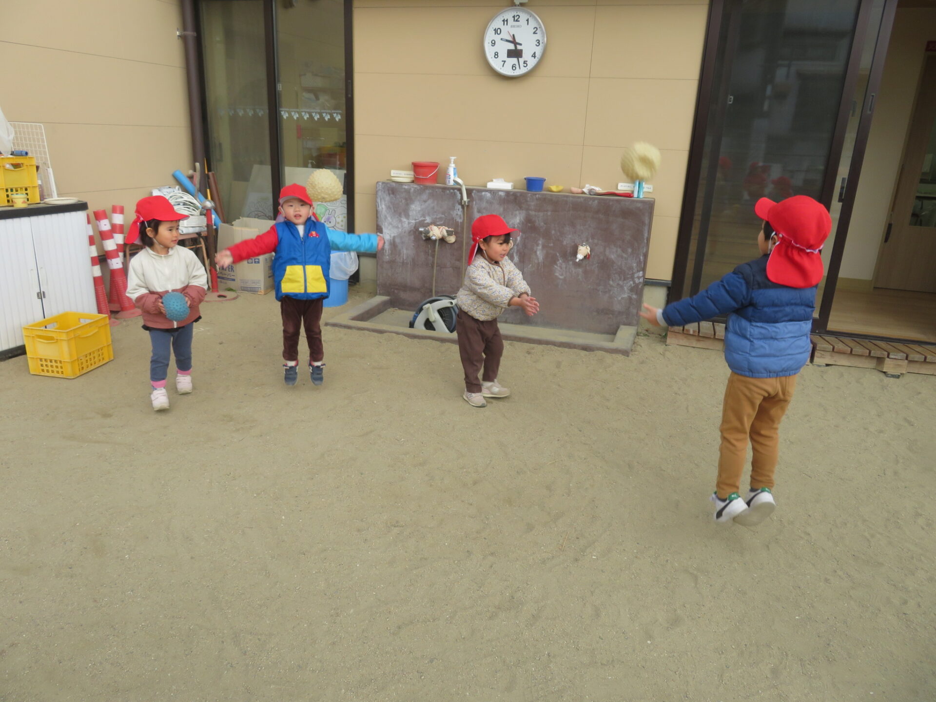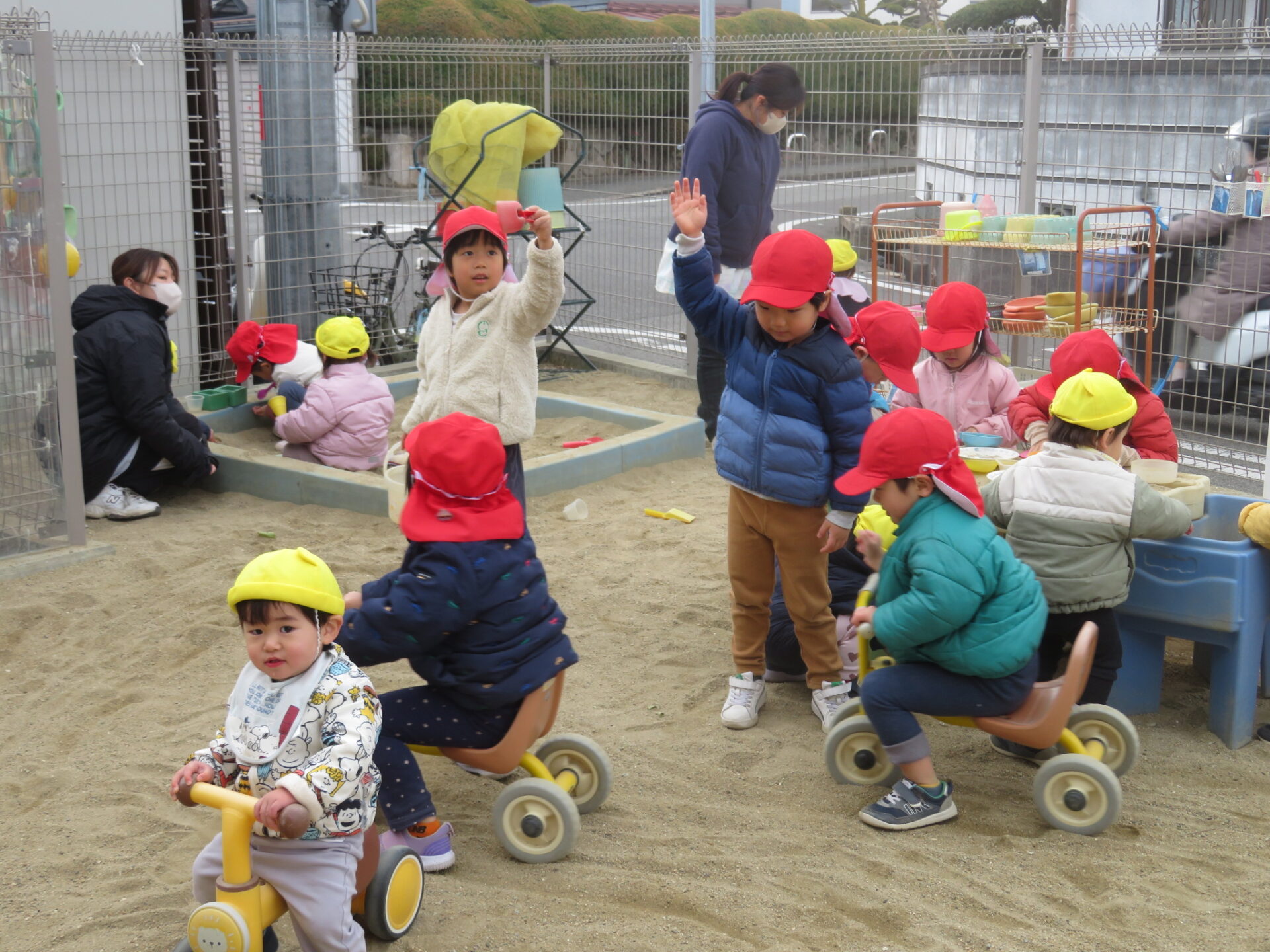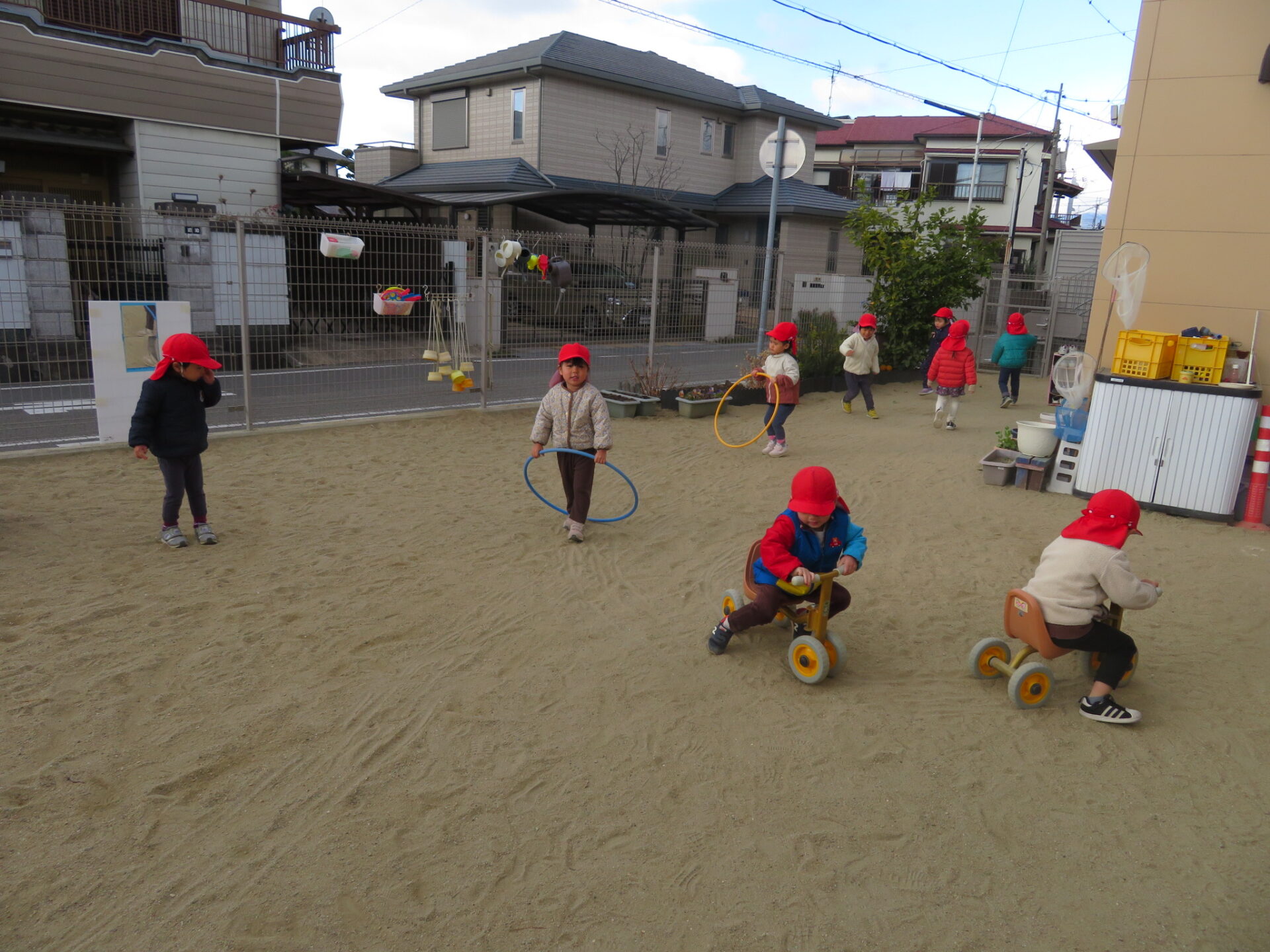 毎日寒い日が続きますが、3歳児の子ども達は園庭で元気よく遊んでいます。