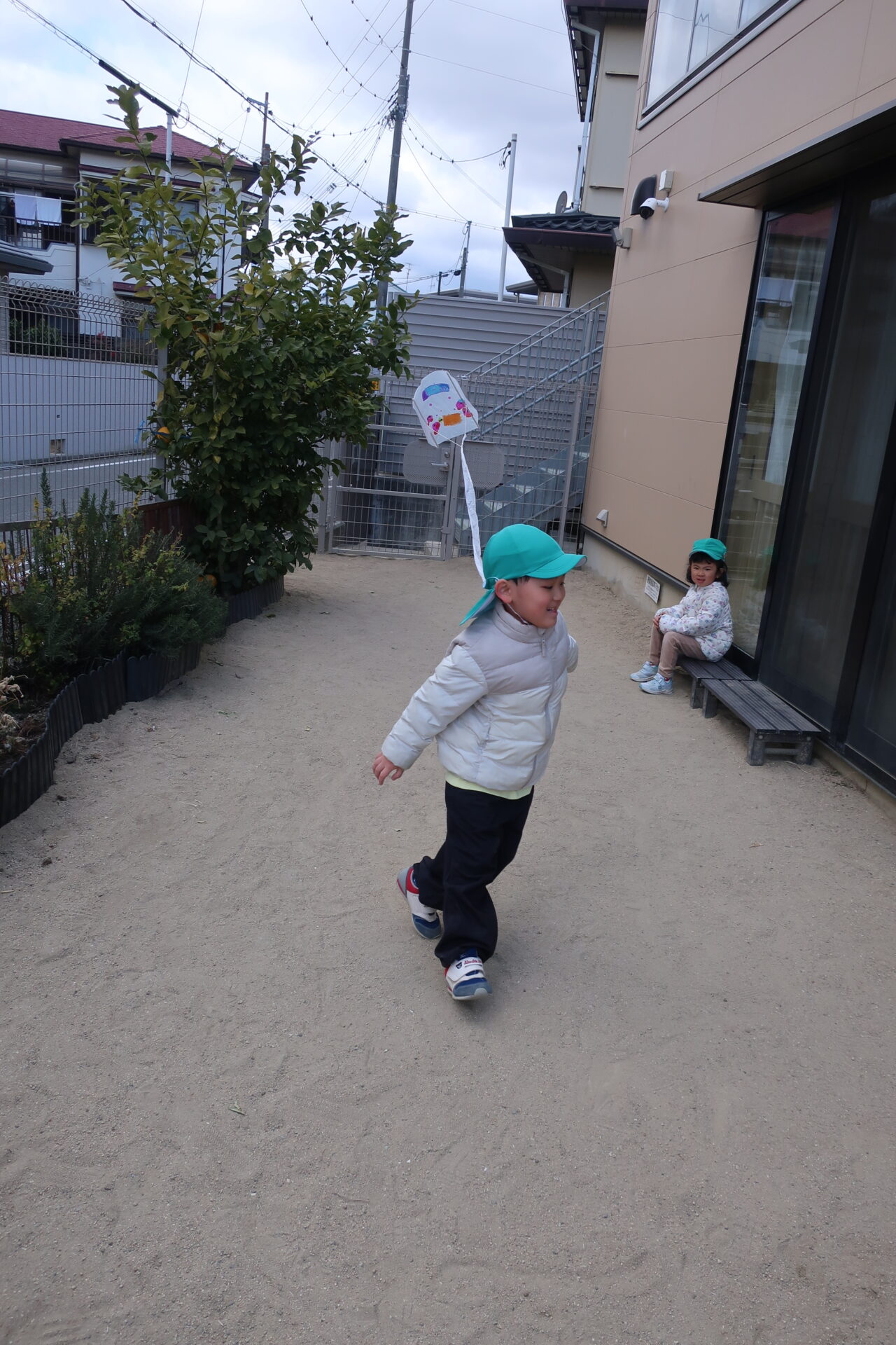 完成したところで、まずは試しに園庭であげてみます☺
