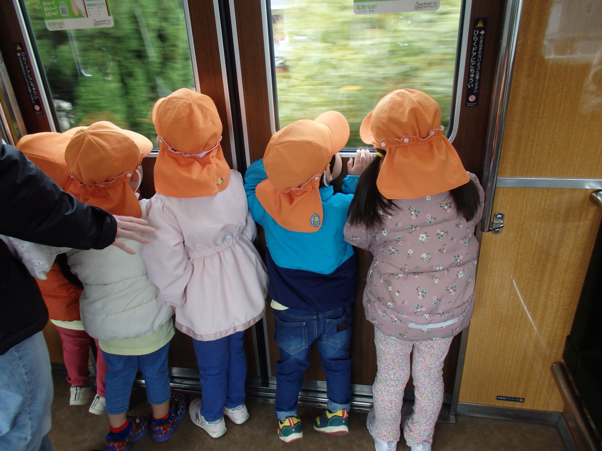電車にみんなで乗りたいね、という声がたくさんあり、電車に乗ってみんなで遠足に行きました。