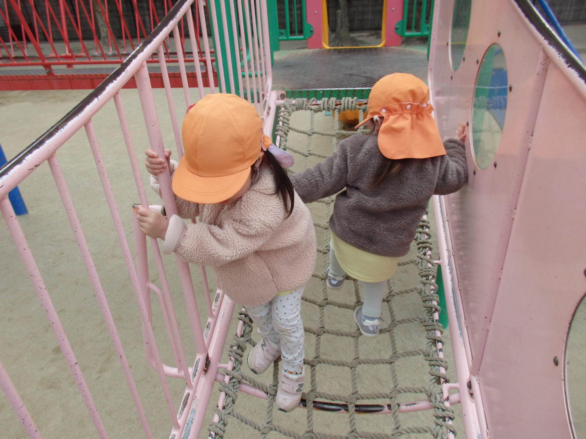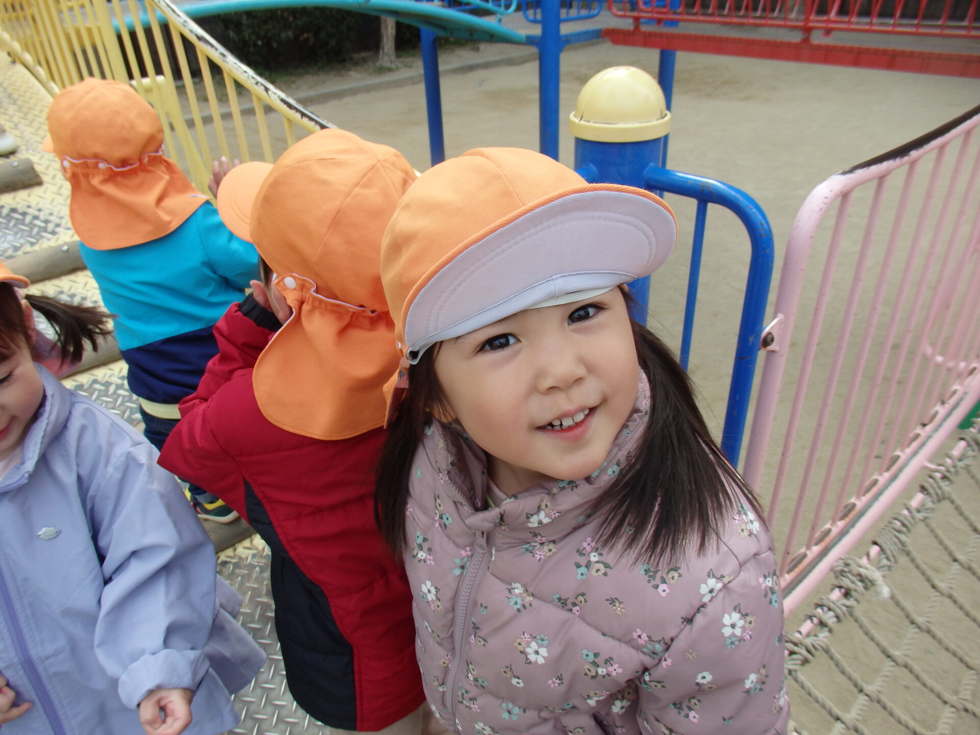 遊具の上から「やっほー!おーい!」と友だちに手を振ってみたり。