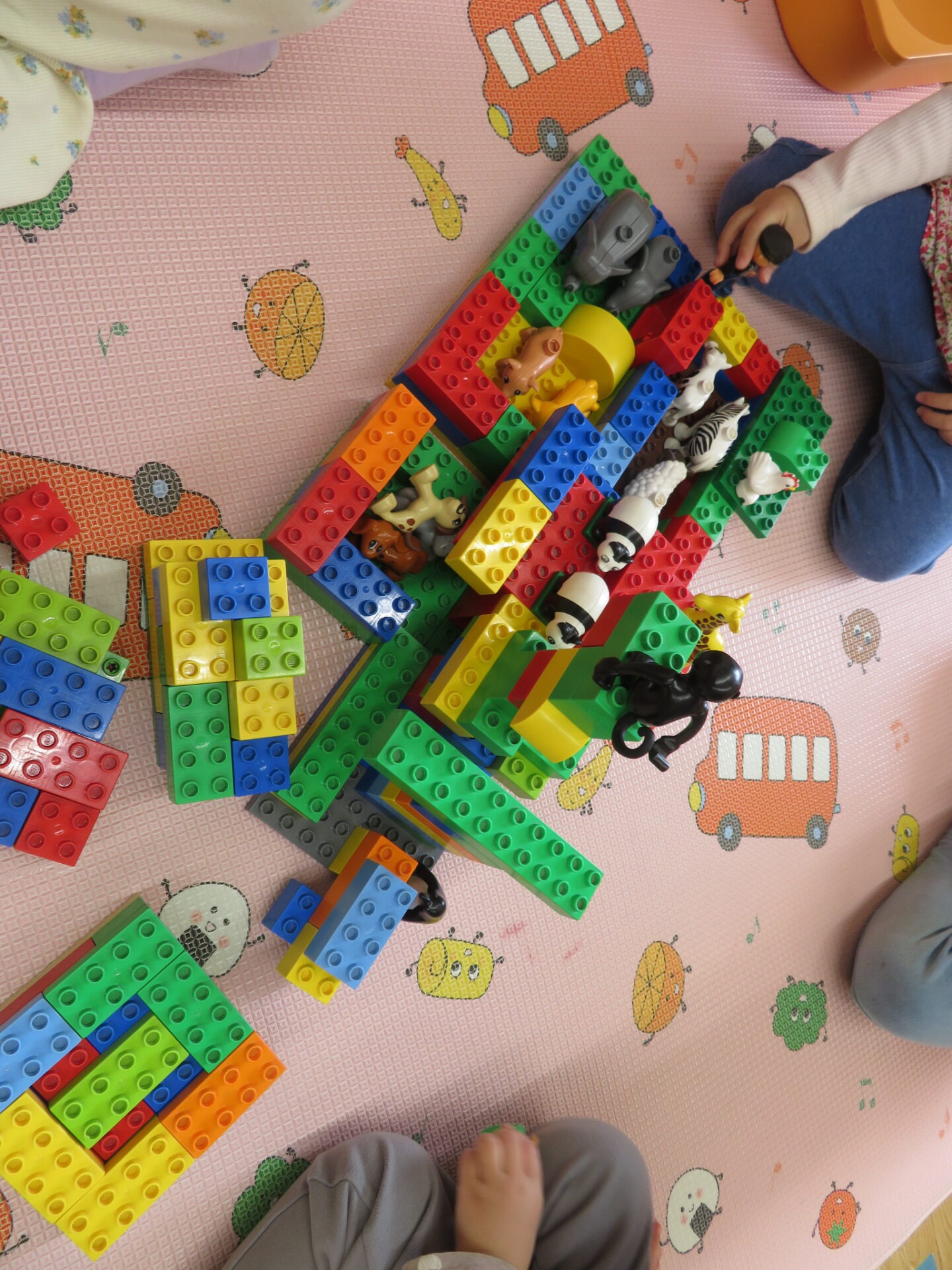 そしてまた別の日にはブロックを使った遠足ごっこが始まりました。