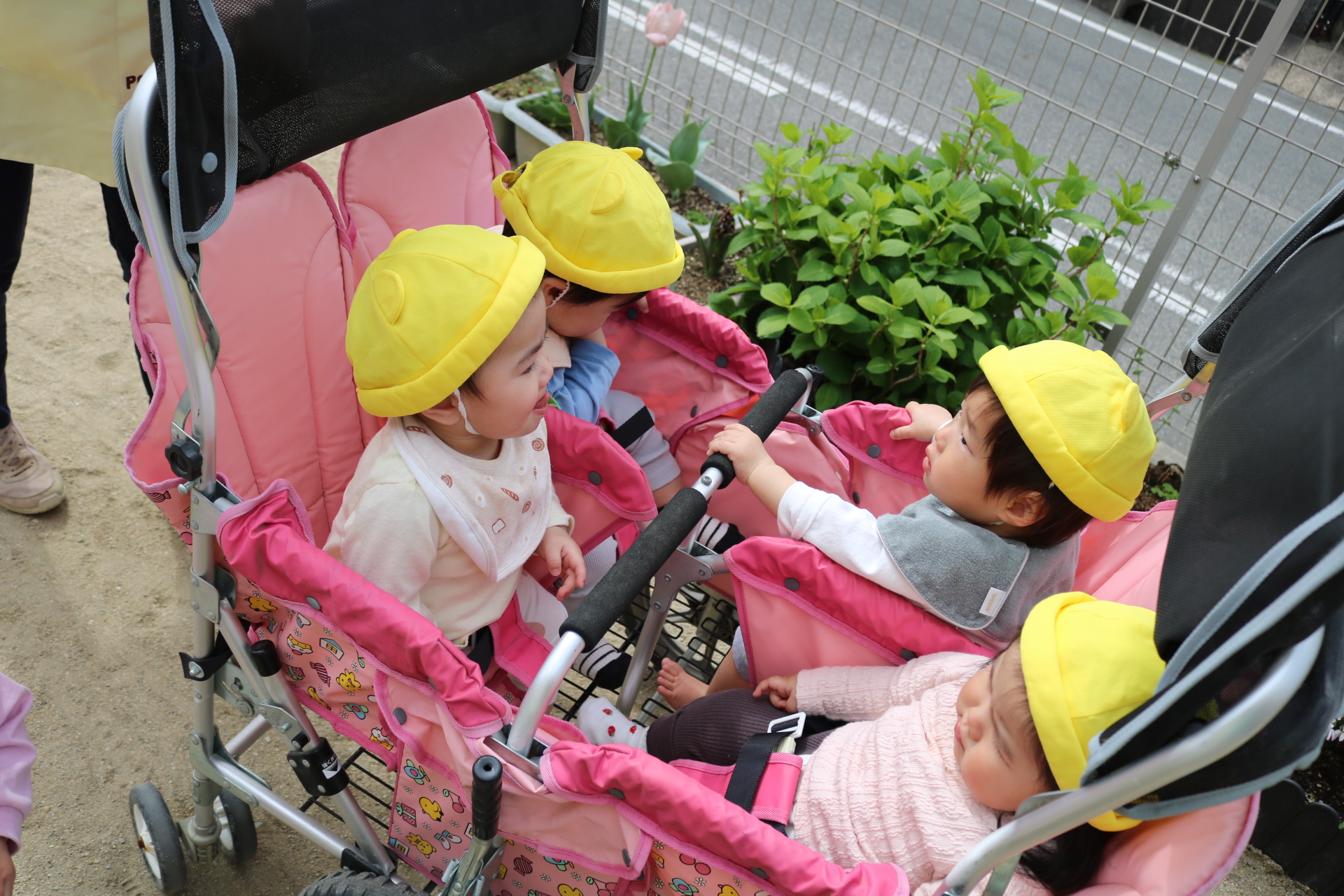 お天気のいい日は散歩車に乗って外気浴もしています☀️