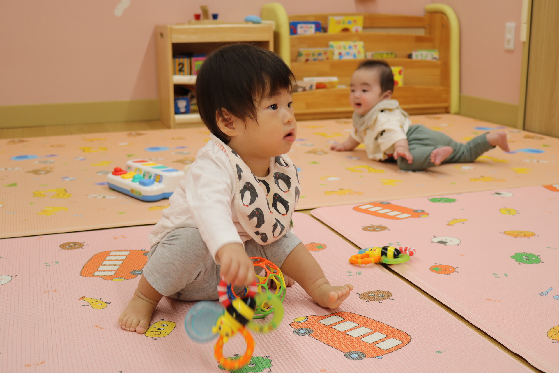 新しい環境や保護者と離れることに初めは泣いていた子どもたちですが、少しずつお部屋や保育士にも慣れてきて、遊んだり笑顔を見せてくれるようになってきました。