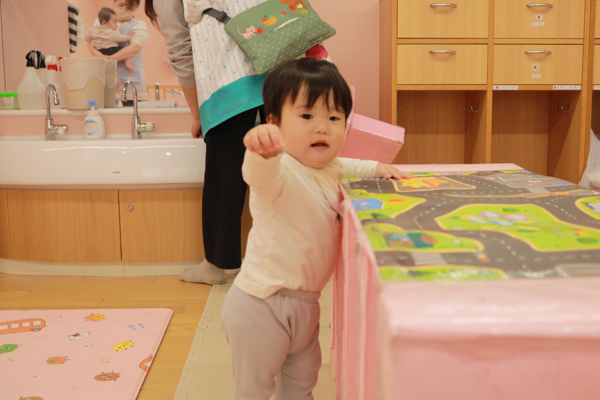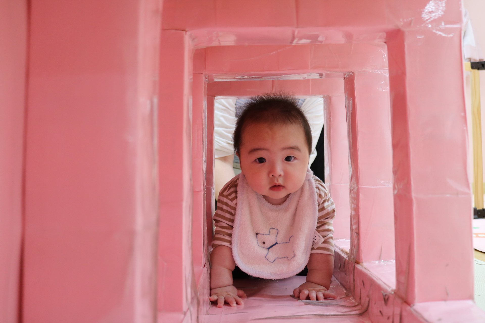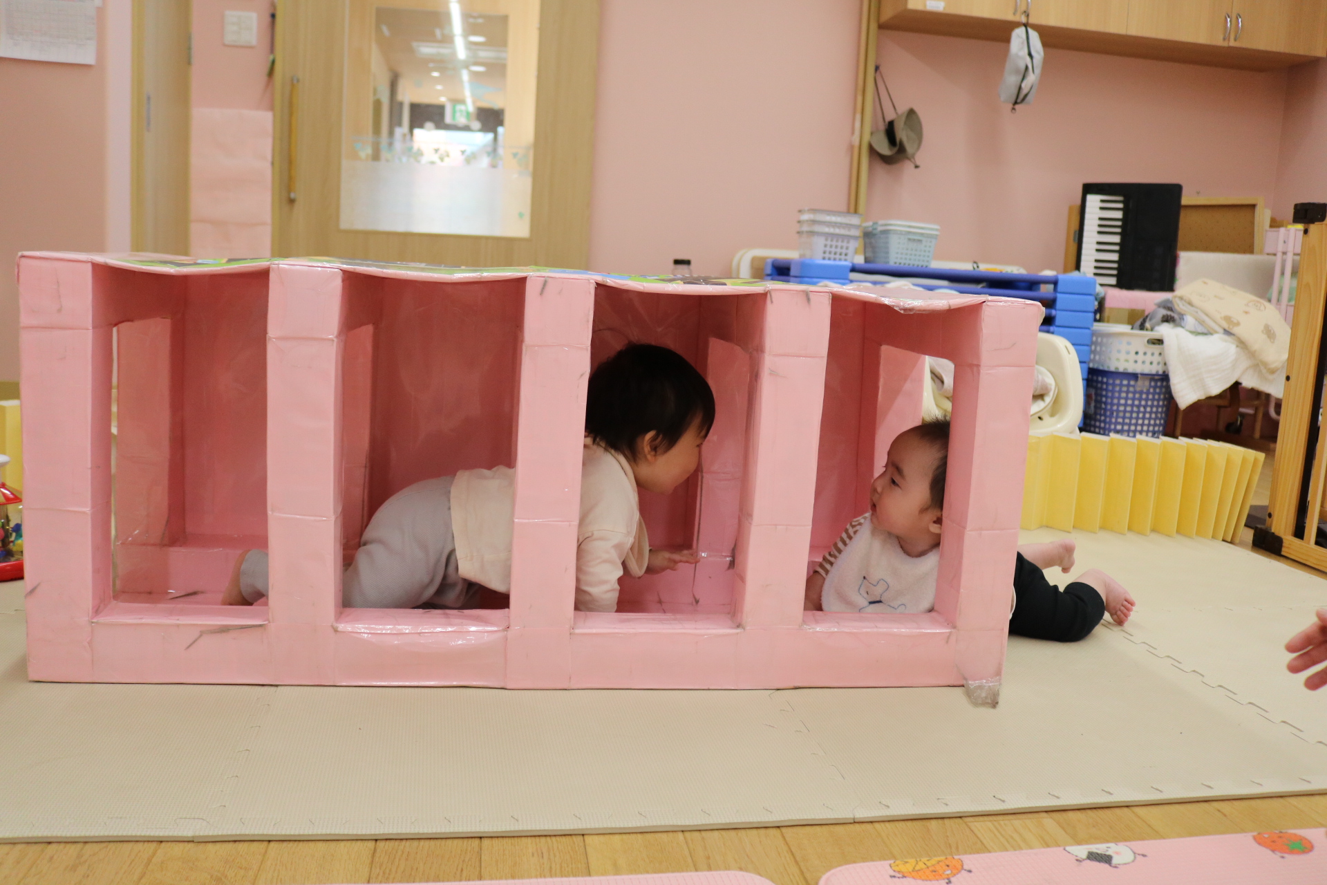 トンネルは子どもたちにも人気でくぐったり、つかまり立ちを楽しんでいます♪