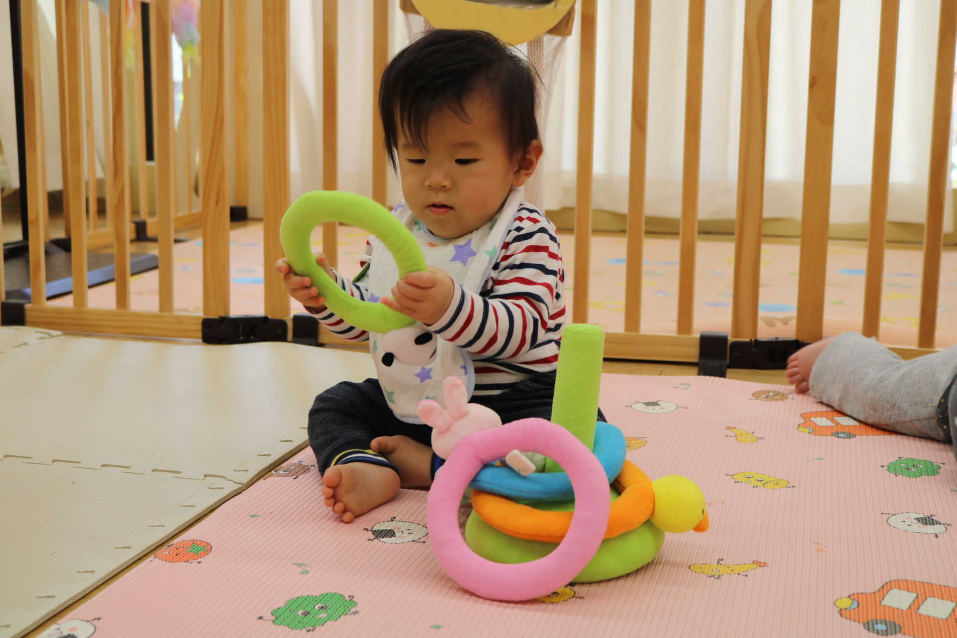 好きなおもちゃを見つけては、触れたり手で掴んでみて遊んでいます。