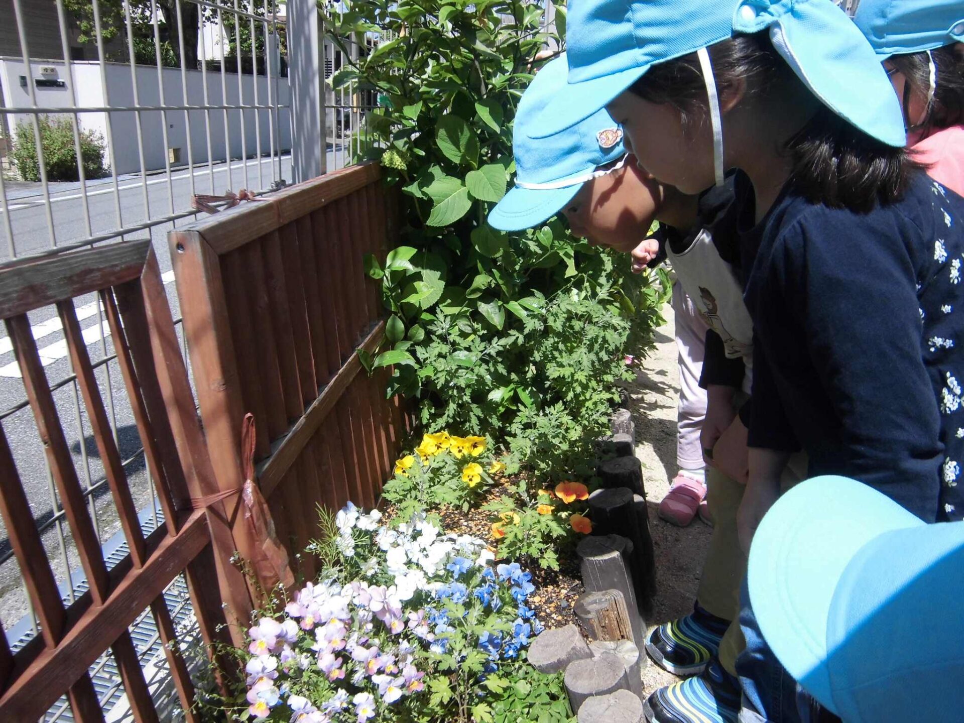 園庭で遊ぶ時には、花壇やプランターのところでダンゴムシを探すことに夢中な子ども達。
