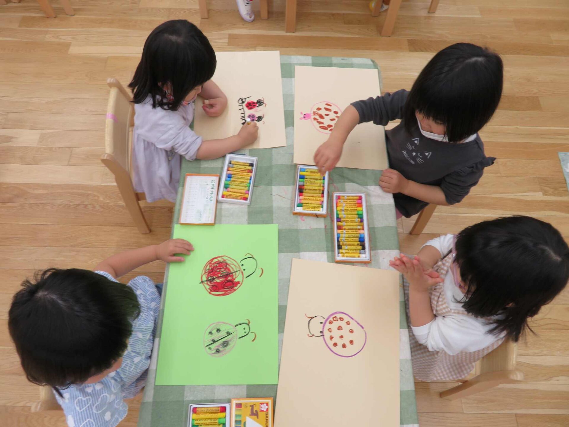 友だちの絵を見て、「てんとう虫この前みたよね!」と園庭で遊んでいた時の事を思い出して、描き足す子どももいましたよ🐞