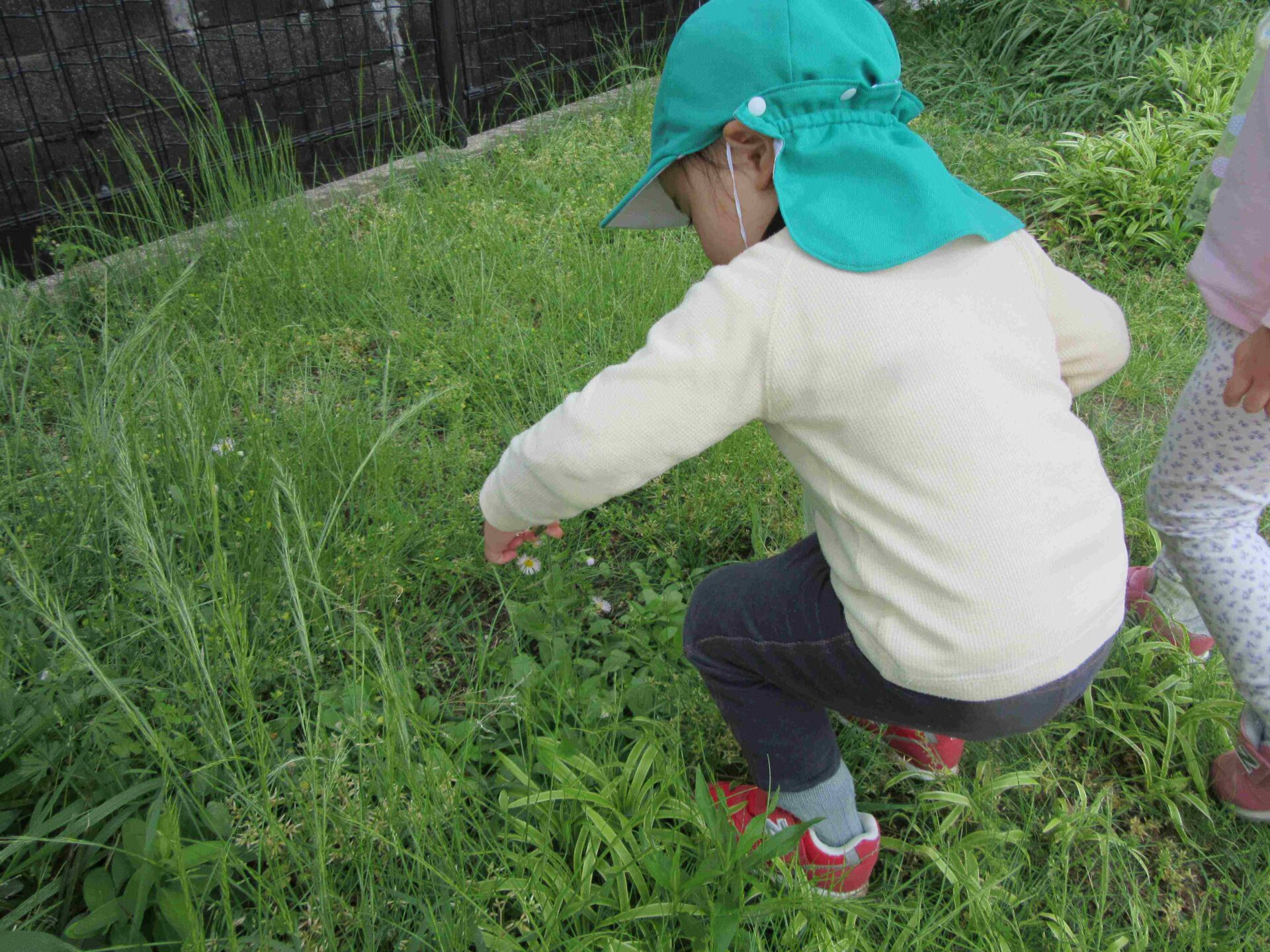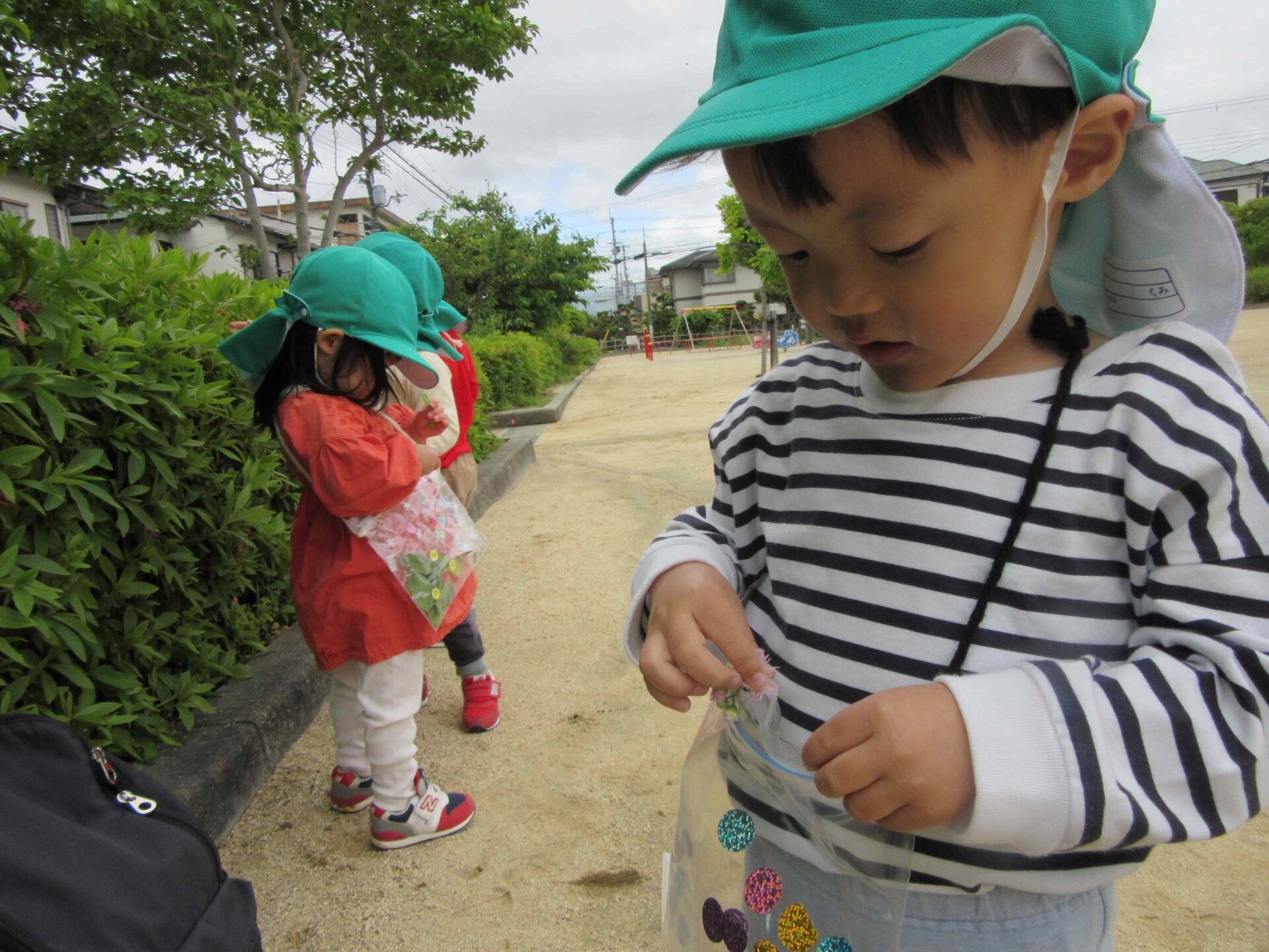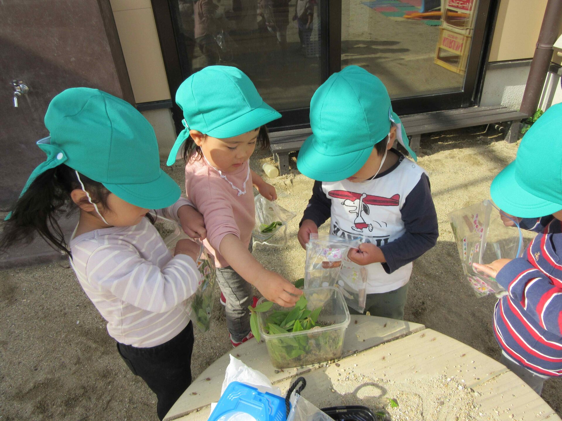 「これはたべるかな?」「おはなもいれてあげようか!」と友だちと話しながら探しています。