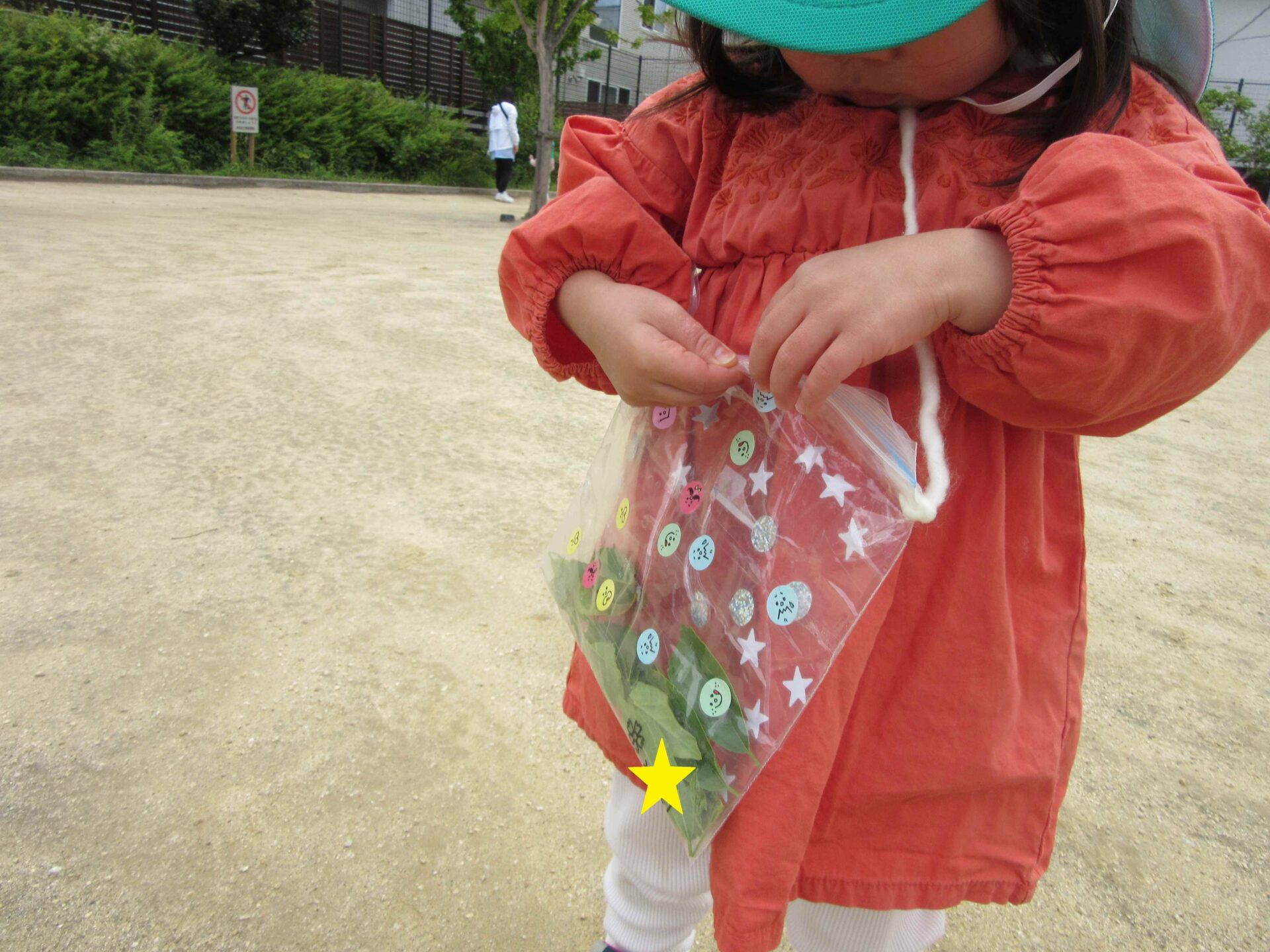 とった葉っぱや花はバッグの中へ。みんな大切そうに1枚1枚入れています。