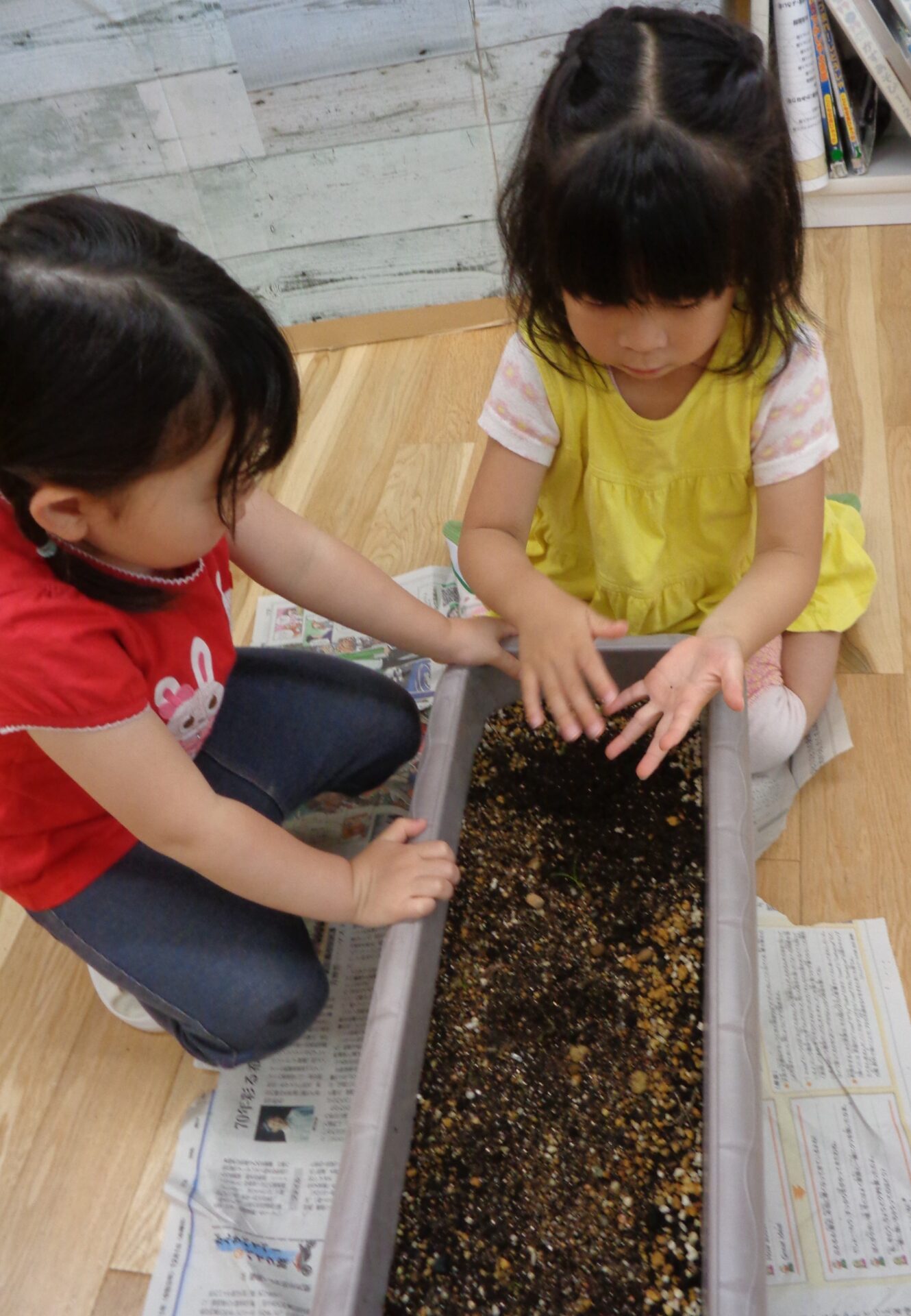 「土の中に入れると種はどこいったか分からないね。」と話していました。