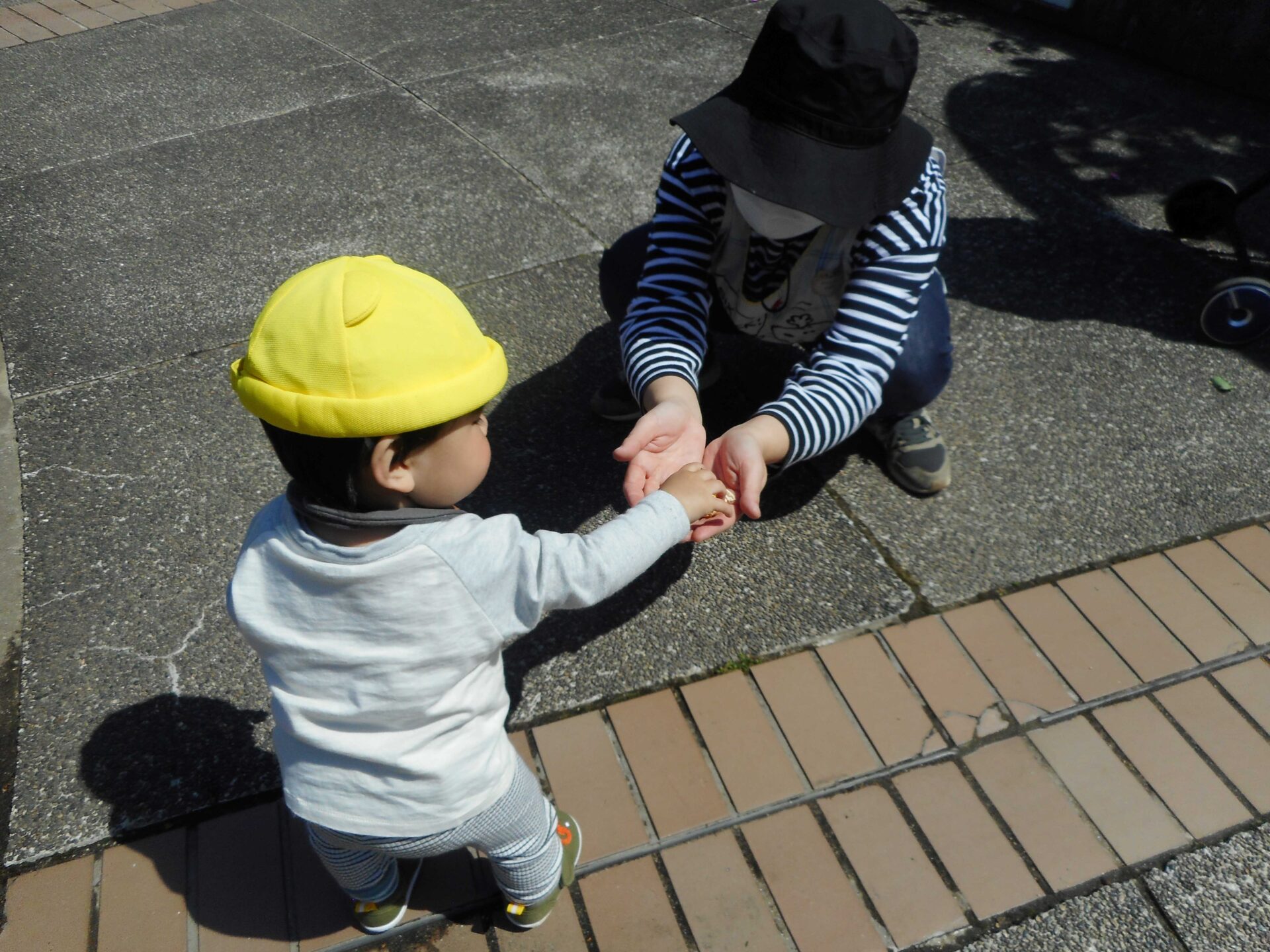 保育者に見つけてきた花を「どーぞ!」と渡してくれました。
